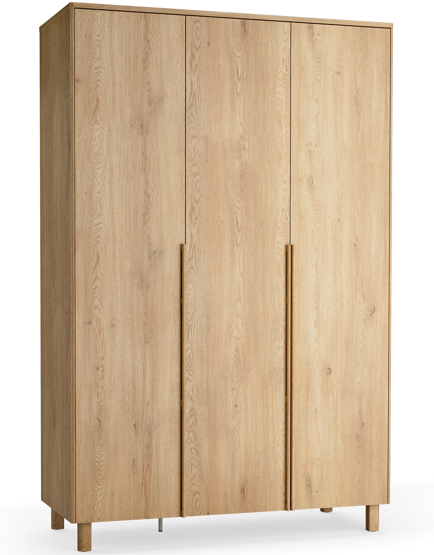 Szafa 3-drzwiowa z oświetleniem z kolekcji Well to funkcjonalny mebel do przechowywania, który wyróżnia się dużą wysokością, przekładającą się na imponującą pojemność. Dzięki przemyślanemu, zróżnicowanemu układowi stref umożliwia czytelną organizację wnętrza i wygodny dostęp do zawartości. Zintegrowane oświetlenie dodatkowo poprawia widoczność, podnosząc komfort codziennego użytkowania i ułatwiając utrzymanie porządku.