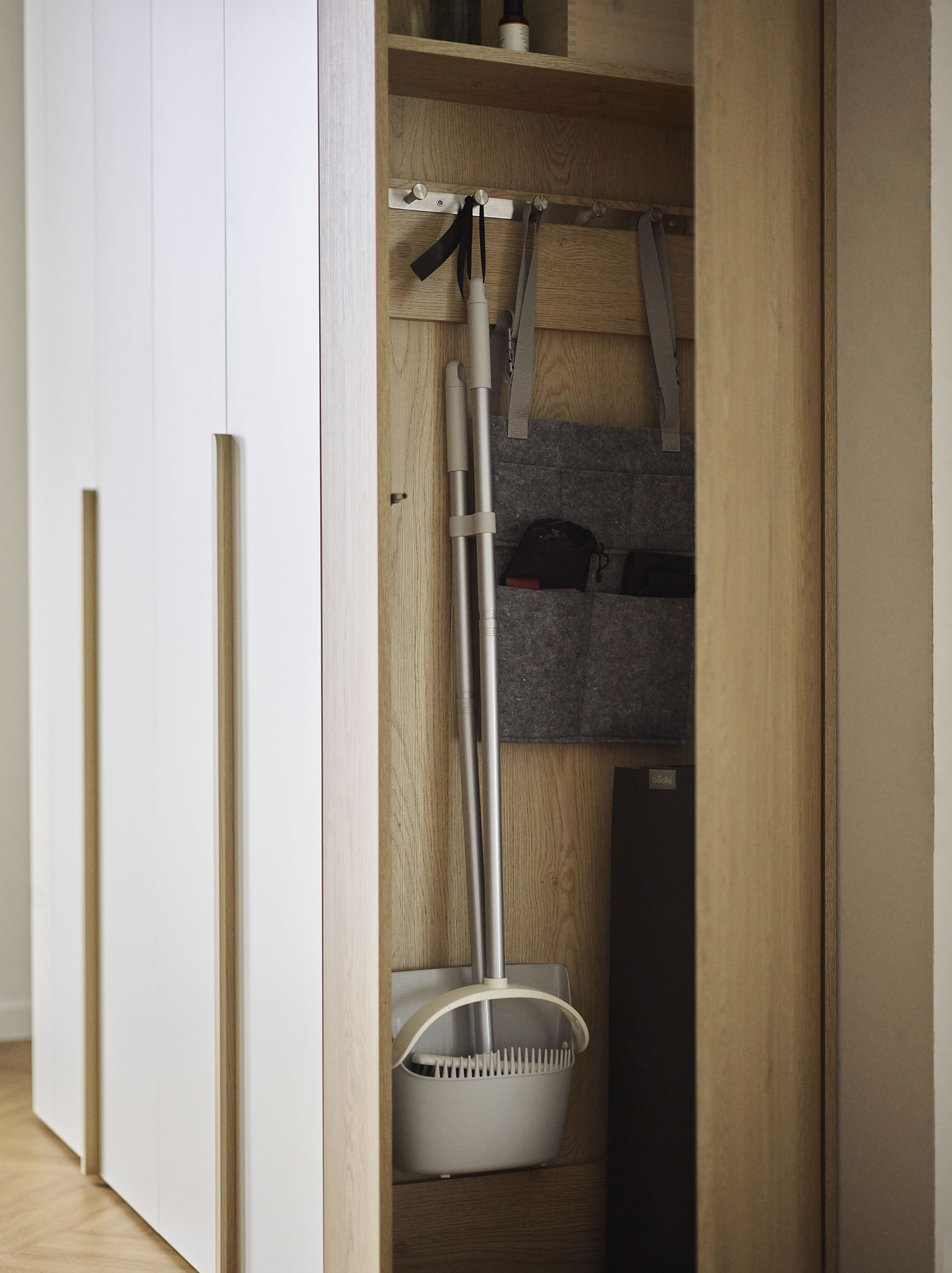 - Aby usprawnić organizację, warto dokupić do szafy bocznej metalowy wieszak Stor. Zawiera 6 haczyków, na których można powiesić rozmaite akcesoria lub organizery na drobiazgi od VOX.