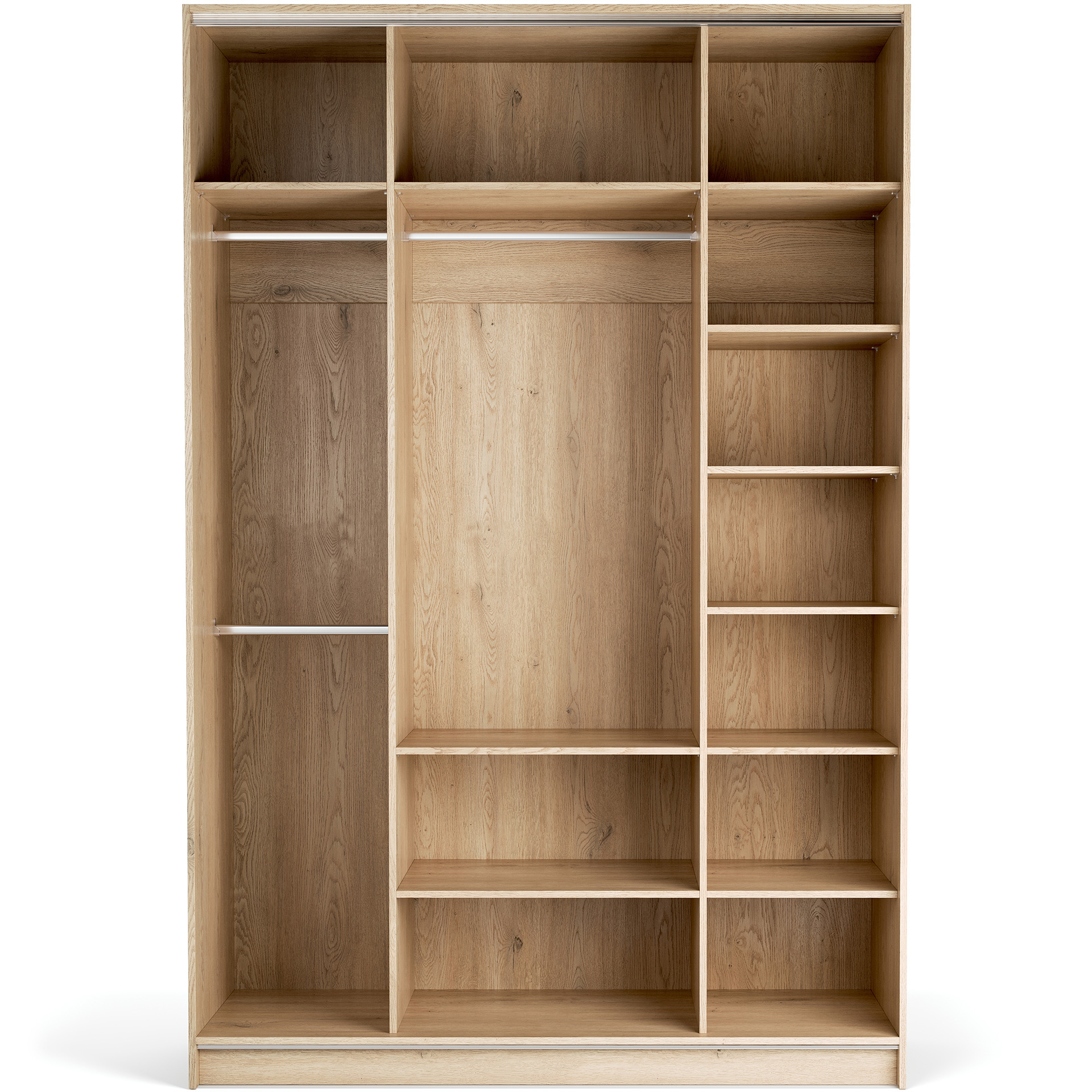 Szafa Stor o szerokości 160 cm z łatwością pomieści rzeczy dwóch osób. Doskonale sprawdzi się jako garderoba otwarta, a przy użyciu paneli maskujących można ją dopasować do wnęki, tworząc szybką i praktyczną alternatywę dla zabudowy na wymiar. Gotowe pakiety wyposażenia i przemyślane rozwiązania ułatwiają utrzymanie porządku.