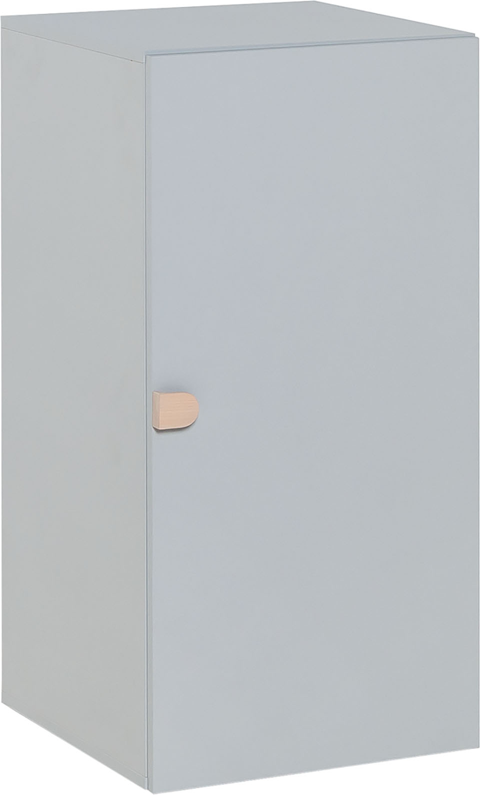 Zamykana szafka 1-drzwiowa z półkami o regulowanej wysokości. Może funkcjonować samodzielnie lub zostać połączona z innymi meblami z kolekcji Stige, tworząc zabudowę dopasowaną do potrzeb dziecka.