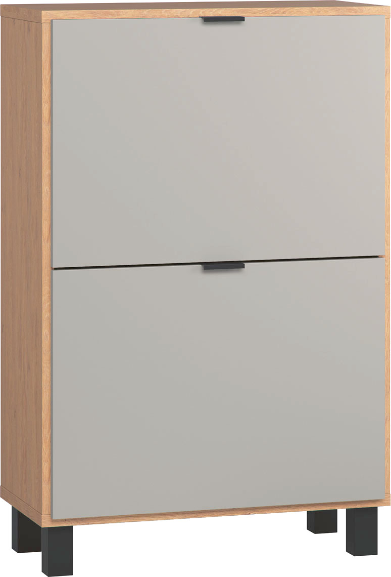 - Szafka na buty musi zostać przymocowana do ściany (odpowiedni zestaw znajduje się w komplecie). Dwie przestrzenie do przechowywania posiadają organizery które pomieszczą wiele par butów.