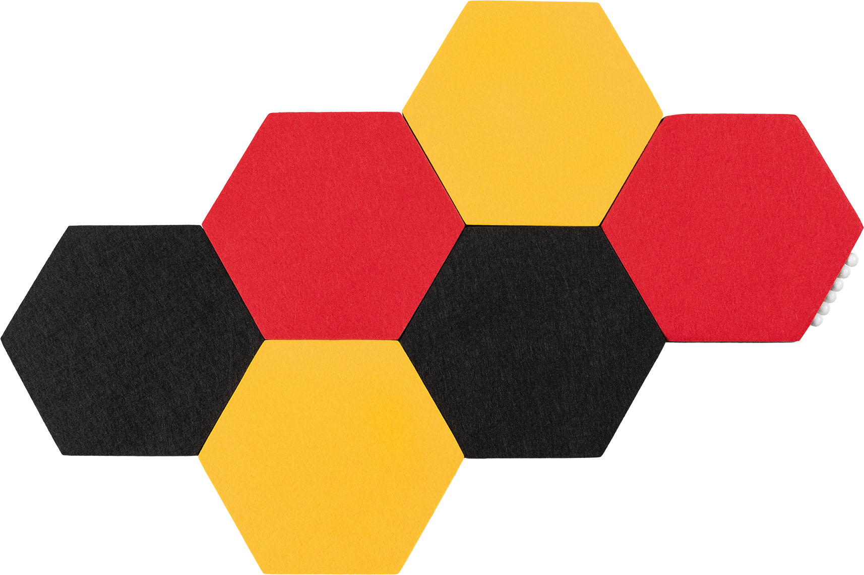 Tablica Felis III składa się z 6 pokrytych filcem heksagonów i pinezek.
