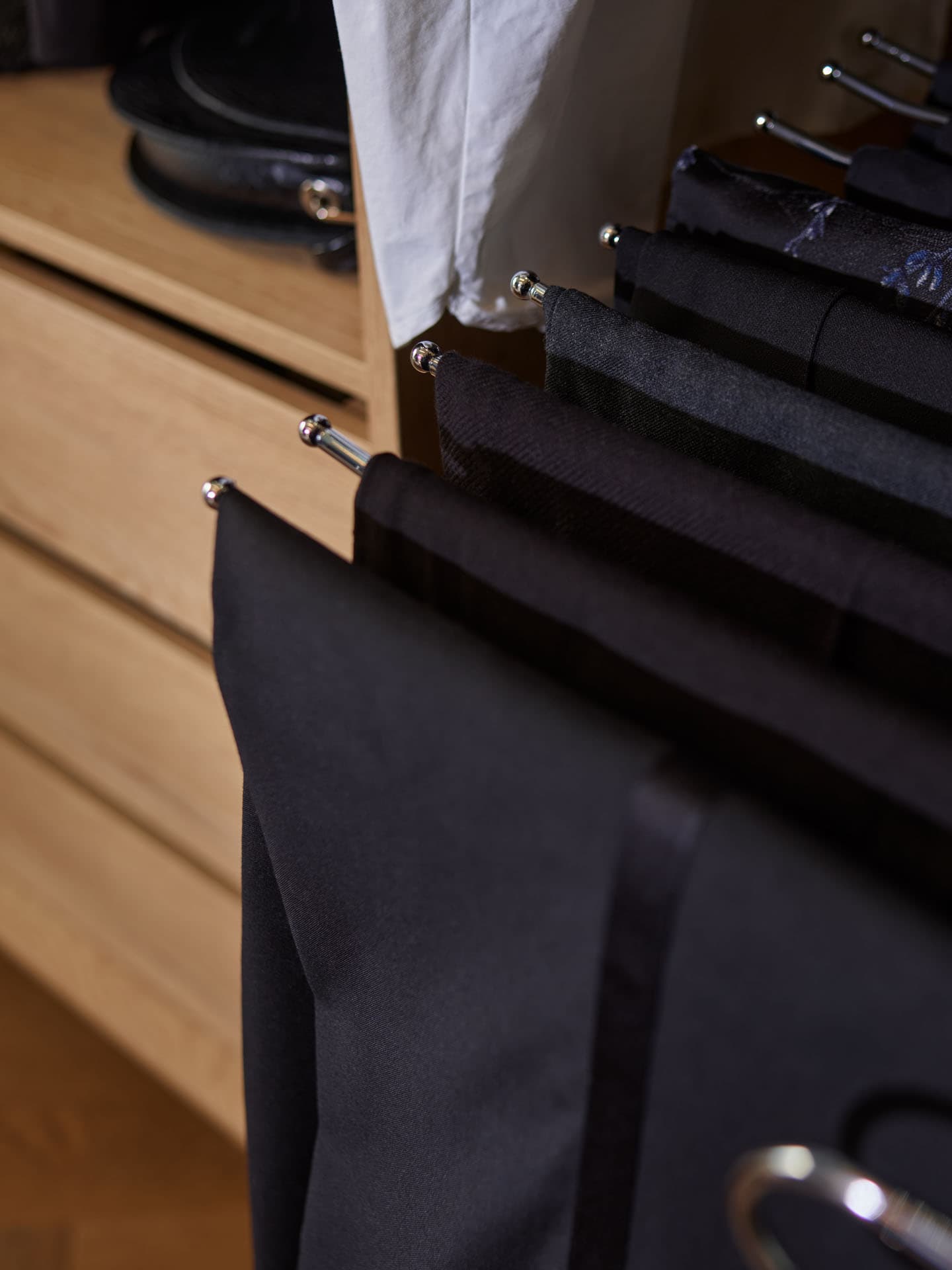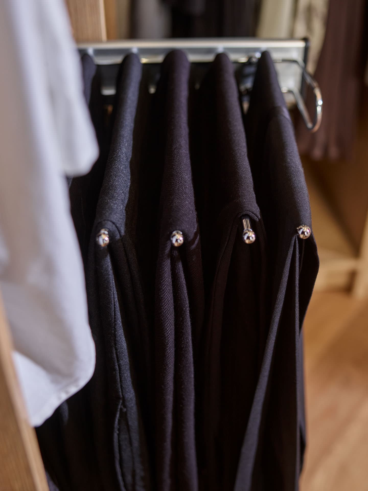 Szukasz sposobu na lepszą organizację w garderobie? Wysuwany wieszak na spodnie to idealne rozwiązanie. Dzięki niemu w sprytny sposób wykorzystasz przestrzeń w szafie, zyskując szybki dostęp do swoich ulubionych par spodni.