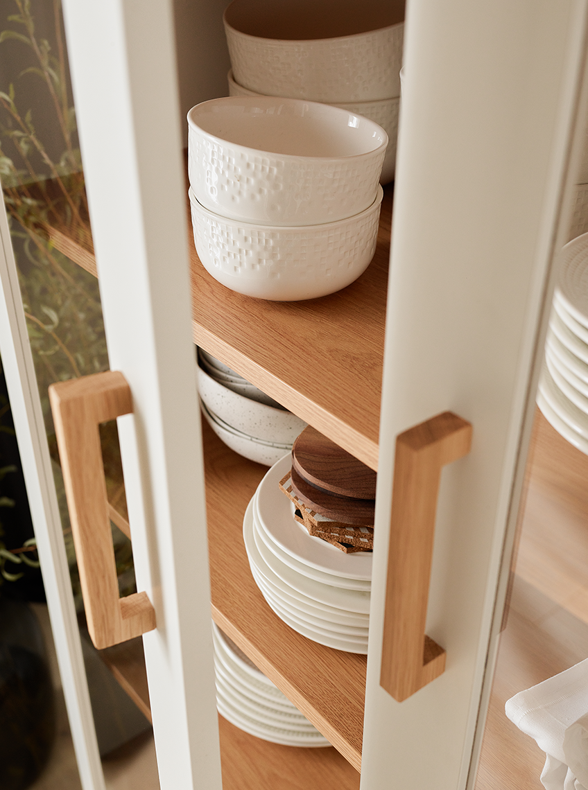 - Wybierz także wygląd uchwytów do drzwi – dostępnych jest 11 zróżnicowanych wersji. Alternatywnie pozostaw na gładkie fronty, używając dotykowego systemu Push to open.