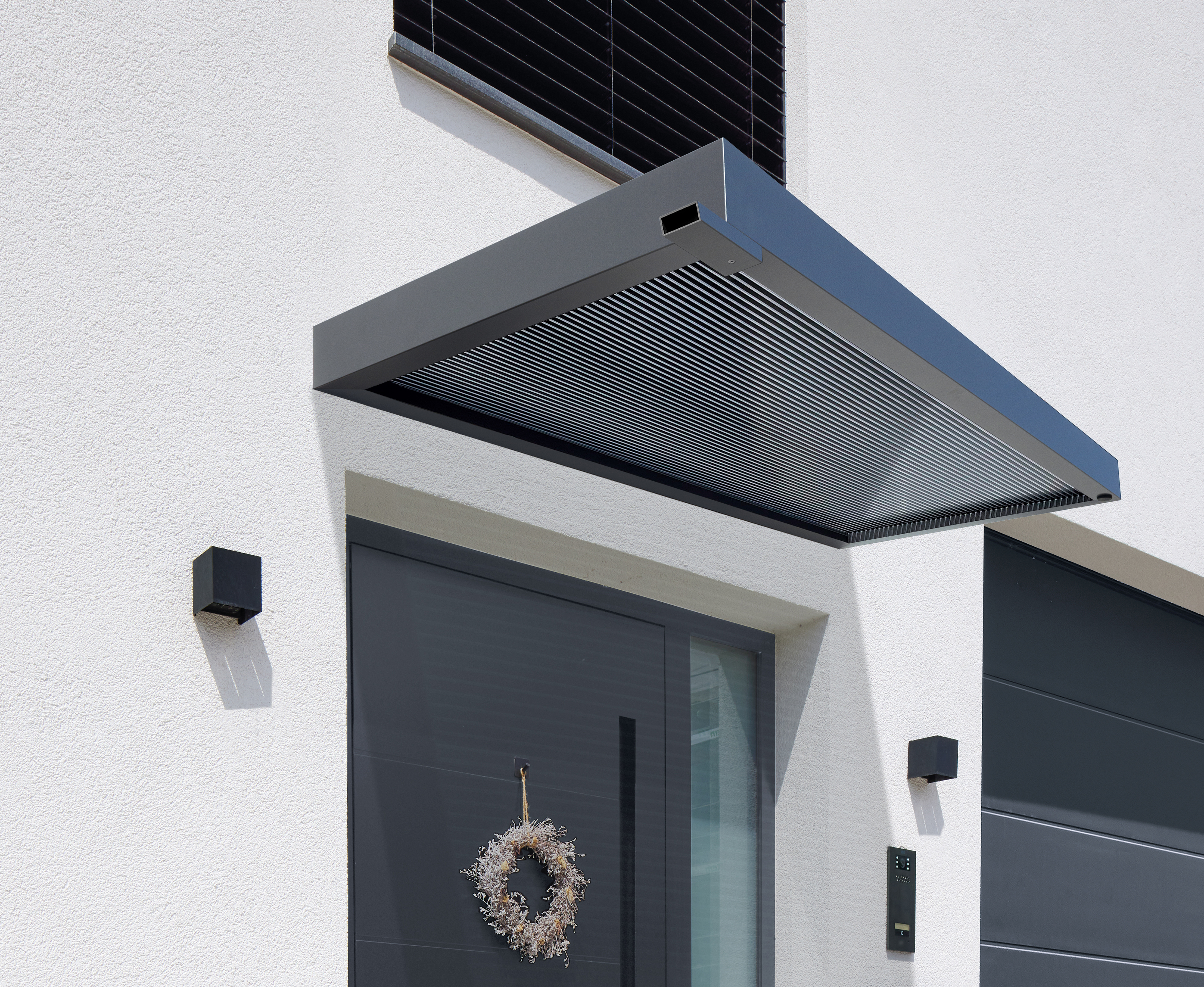 Zadaszenie prostokątne BS 3D-Line charakteryzuje się prostym, kubicznym designem, trwałą konstrukcją aluminiową, która została pokryta matową, drobnoziarnistą powłoką proszkową. Szczególną elegancję zapewnia wypełnienie, do którego zastosowano 16 mm płytę „zebra”. Przezroczysta płyta z poliwęglanu ma ciemne pasy wzdłużne, które tworzą wyjątkowy efekt 3D. Chroni niezawodnie przed wiatrem i pogodą, a w upalne dni może nawet zapewniać przyjemny cień, jednocześnie przepuszczając wystarczającą ilość światła. Zintegrowany system odwadniania zapobiega gromadzeniu się wody deszczowej.