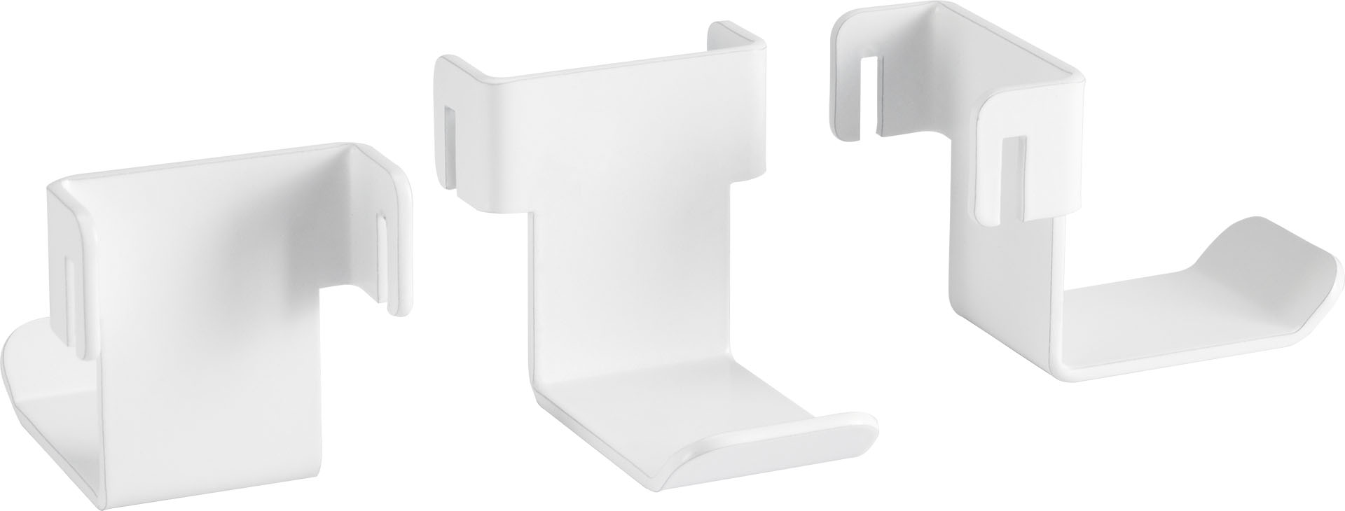 - Haczyki posiadają gładkie białe wykończenie, dopasowane do organizera i stelaża biurka ISLA.