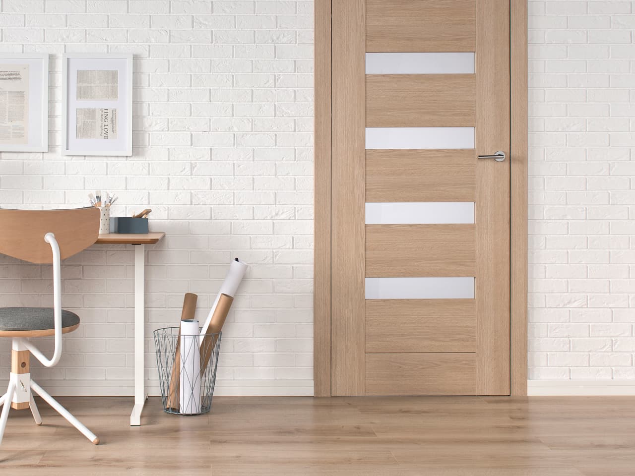 Piaskowy dąb, a może biała sosna? Drzwi Prezzo są dostępne w 6 ponadczasowych kolorach. Możliwość dowolnego konfigurowania przeszkleń pozwala dopasować je do wielu różnych przestrzeni.