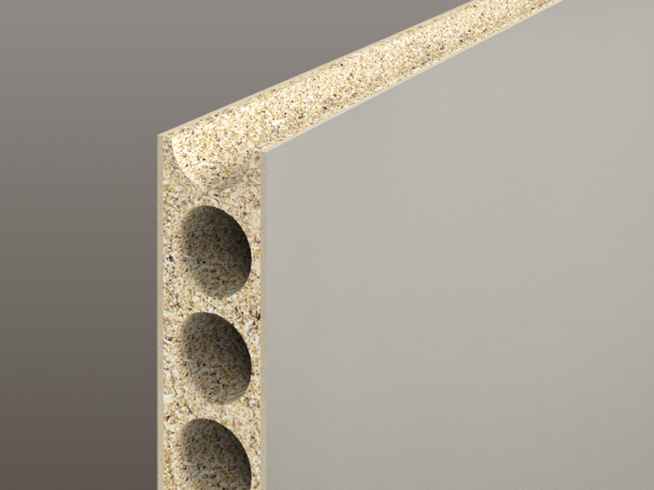 Drzwi Rimo+ wypełnione są otworowaną płytą wiórową, która poprawia stabilność skrzydła i znacząco podwyższa parametry akustyczne. Dzięki temu drzwi są trwałe, skutecznie tłumią dźwięki i dobrze wyciszają.