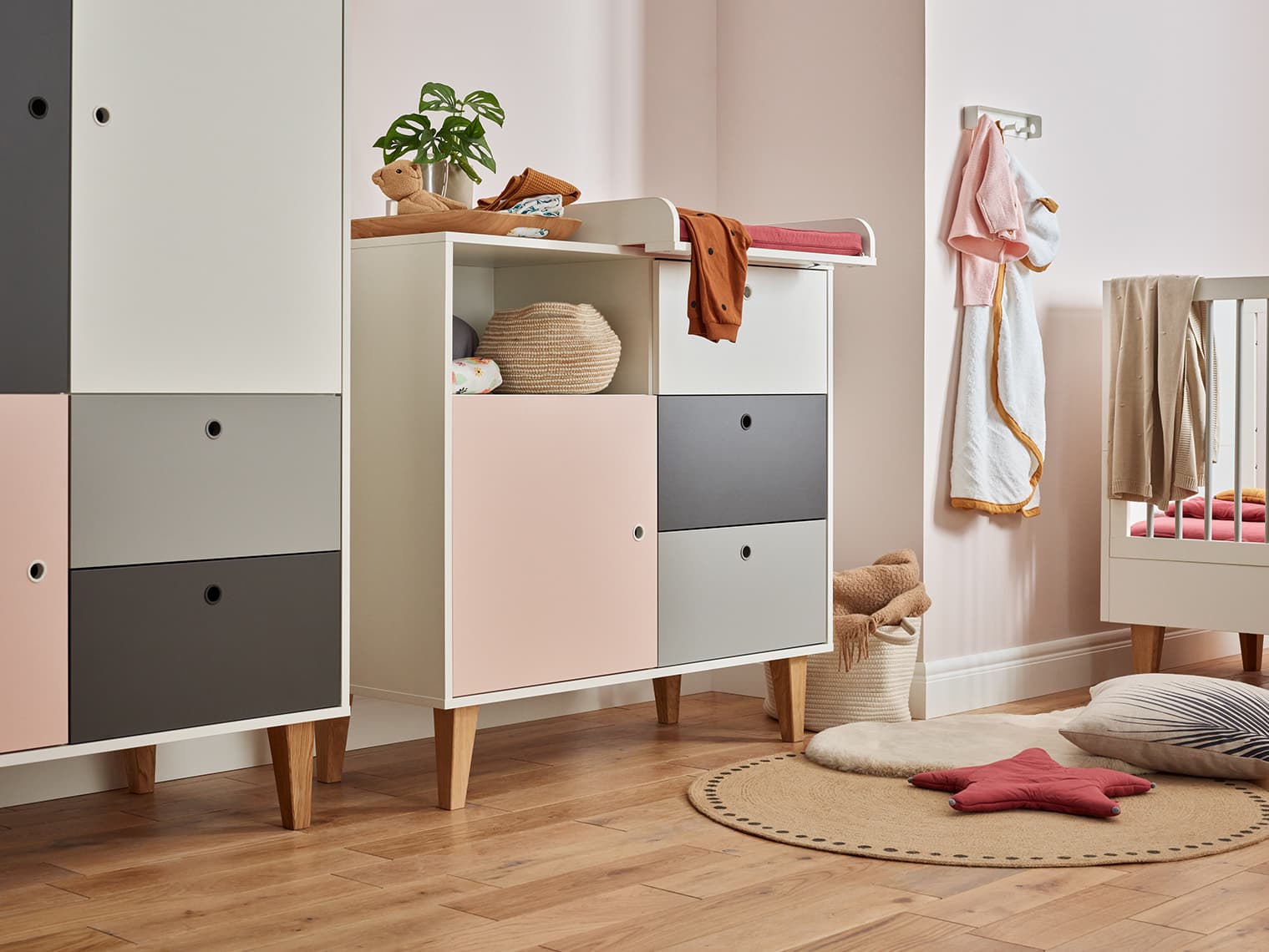 The chest of drawers is one of the most versatile pieces of furniture in the Concept collection. In the roomy cabinet and capacious drawers you can comfortably store clothes, underwear or toys. The top of the chest of drawers is instead an ideal place for any decorations, plants or photo frames.