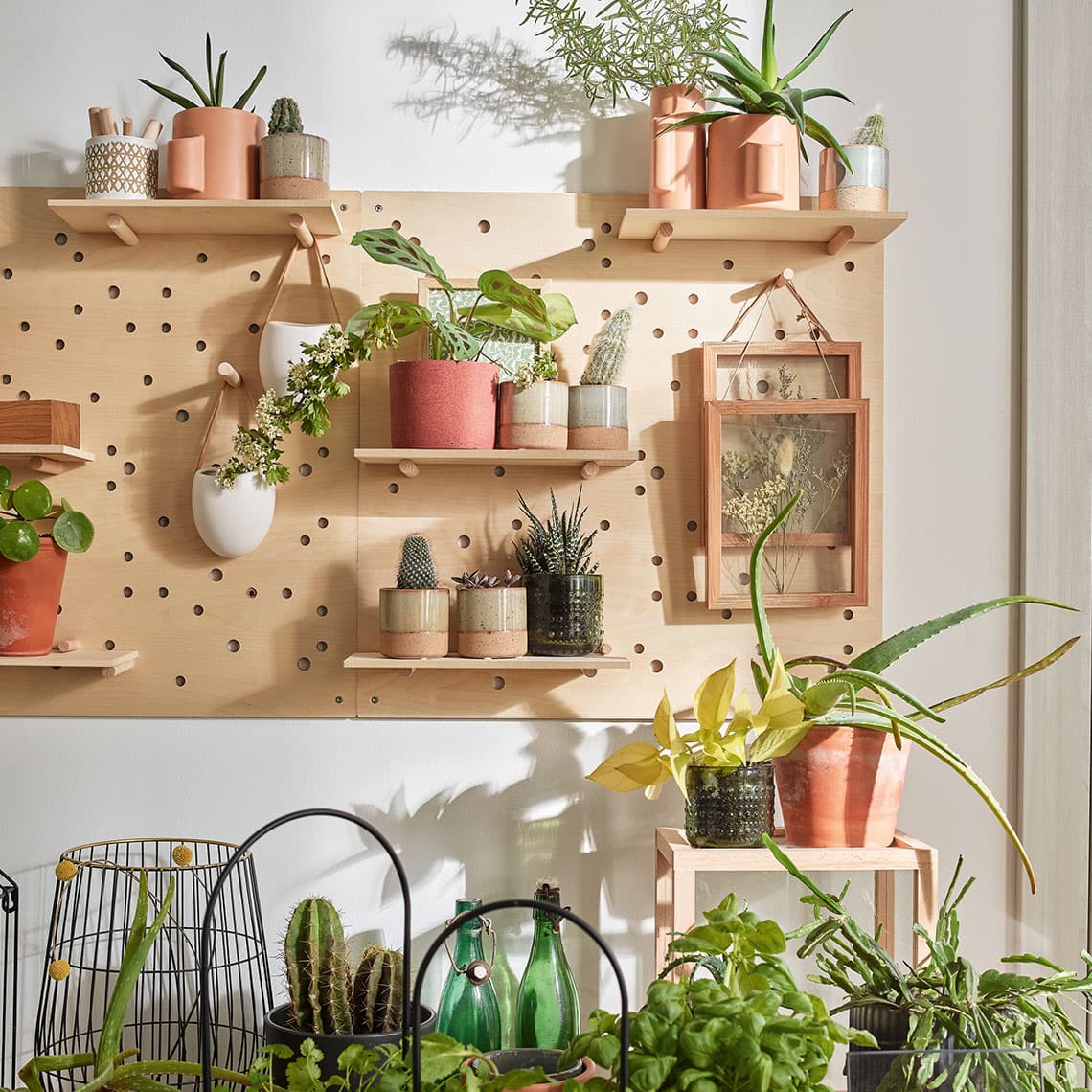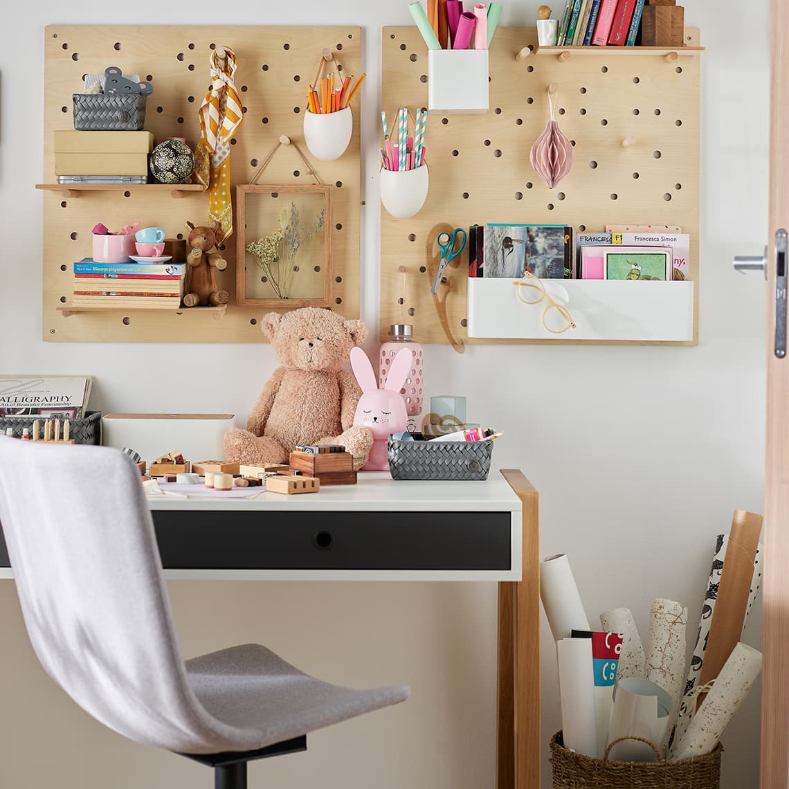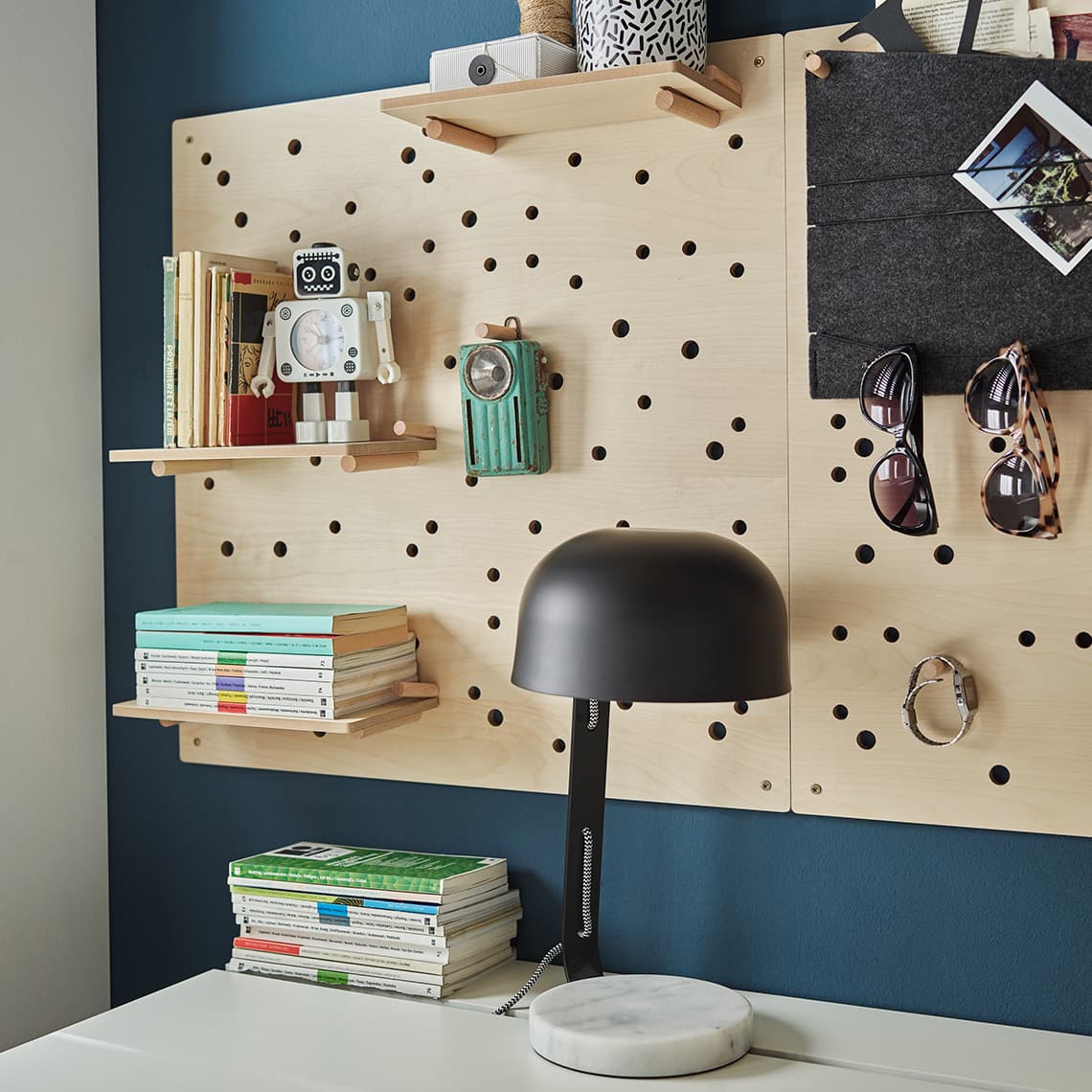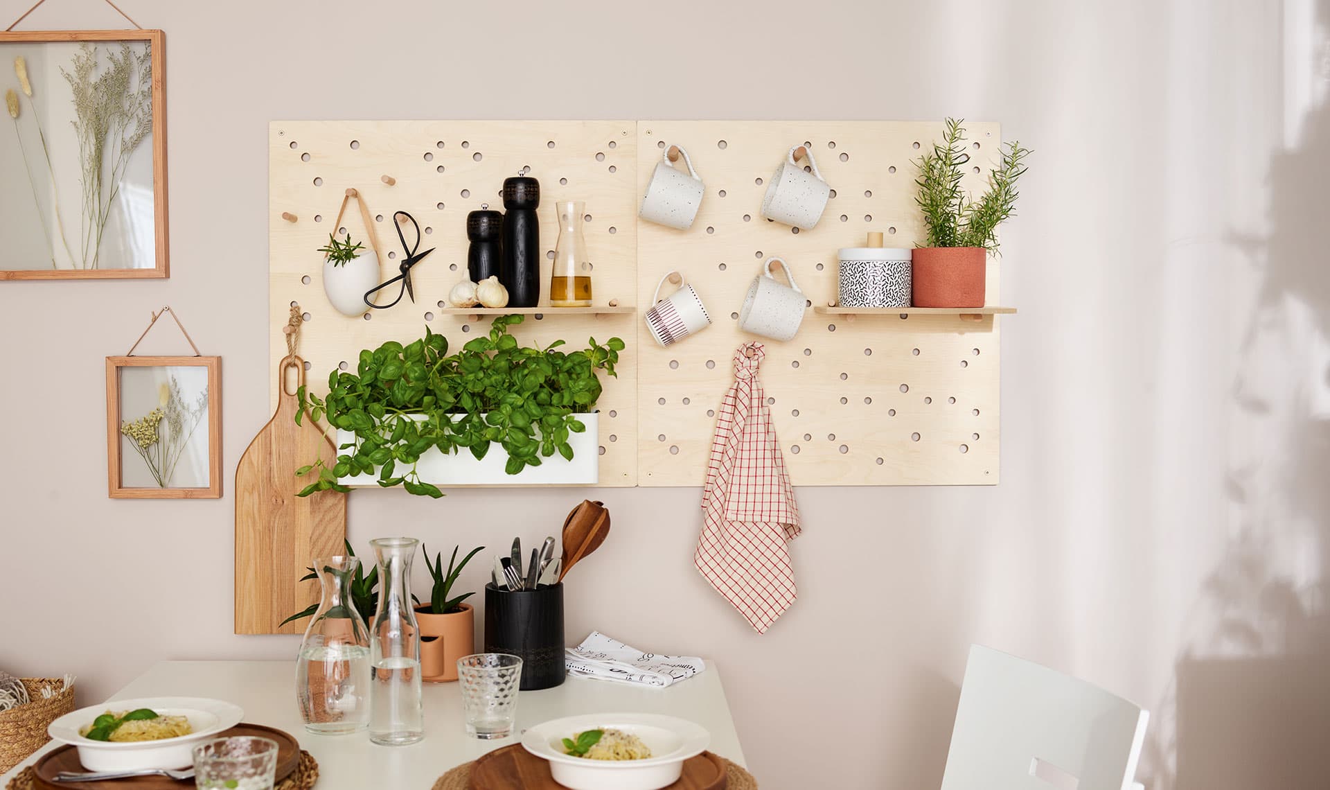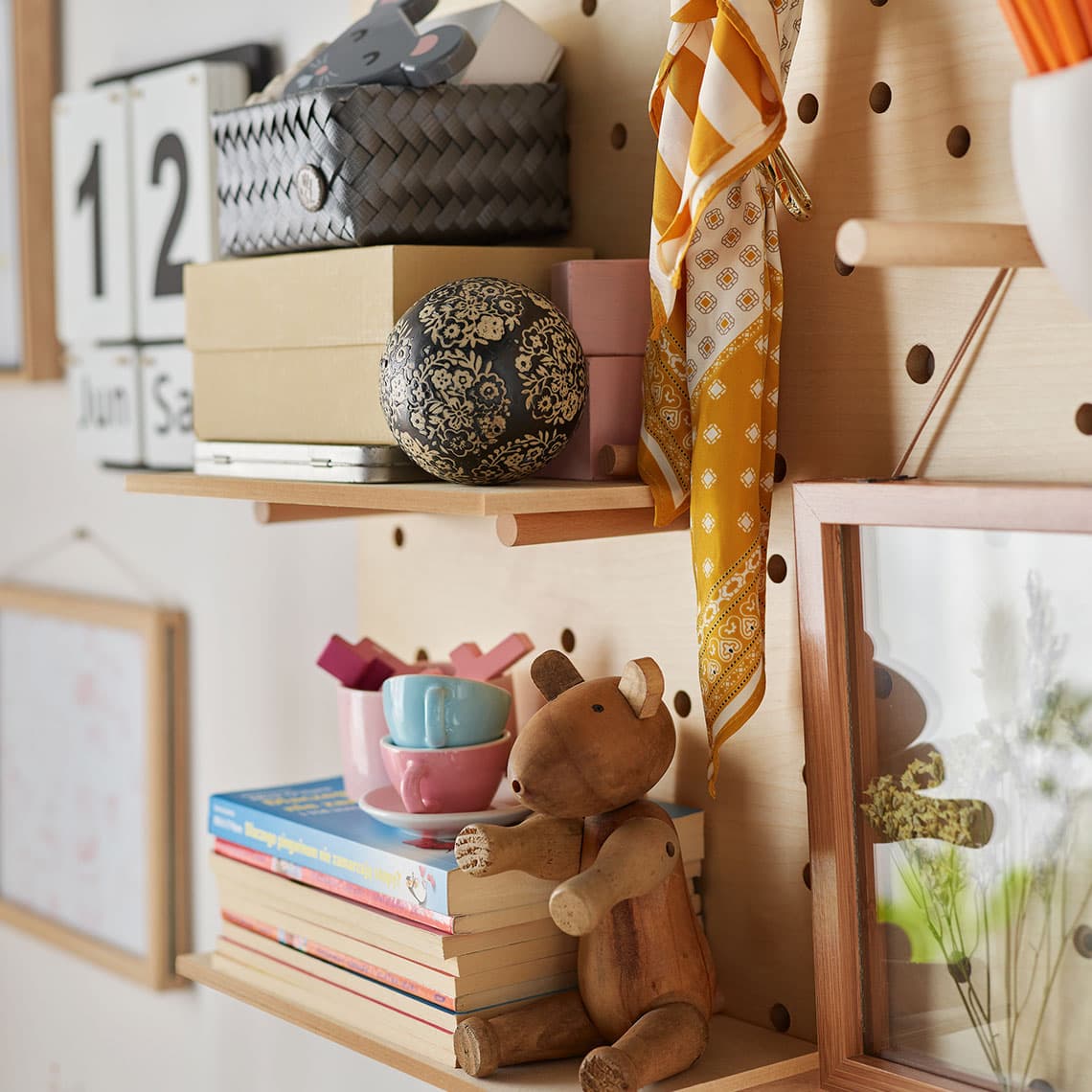 The set includes a Slot panel, shelves and wooden pegs. After placing the accessories in the panel, you will gain a lot of space for storing and displaying items. It's a clever way to make use of a free piece of wall.