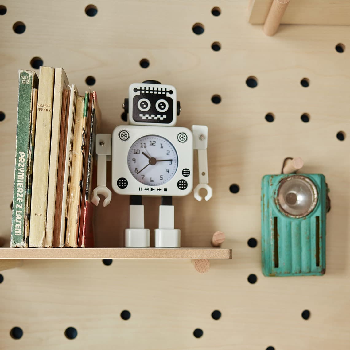 - The board with shelves and pegs is lightweight but sturdy. It can also provide a base for heavier objects - books, pots or dishes. To attach the panel to the wall there are 4 universal pegs, included in the set.