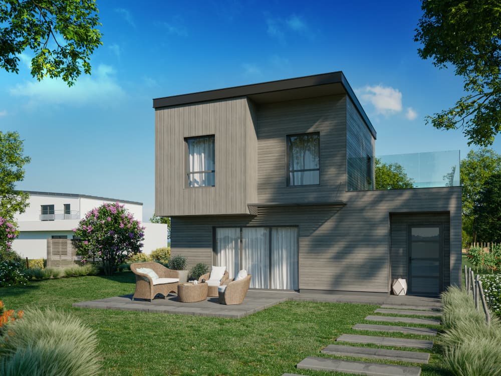Elewację drewnopodobną możemy zamontować tylko na określonych fragmentach budynku: cokołach, dobudówkach, przy wejściu, na tarasie czy na poszczególnych kondygnacjach. Wyróżnienie wybranych powierzchni pomoże zaakcentować poszczególne części budynku (np. garaż czy część mieszkalną) oraz wpłynie na jego proporcje.