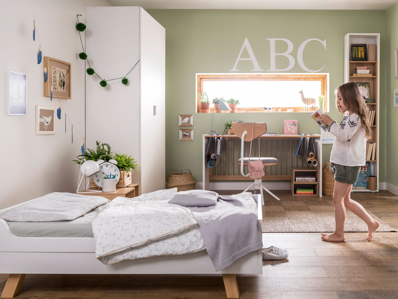 Solidne meble mogą towarzyszyć Ci przez lata. Ich wytrzymała powierzchnia jest łatwa w utrzymaniu i odporna na twórczość małych artystów. Zestaw z łatwością rozbudujesz, bo dziecięca kolekcja jest komplementarna z rodziną mebli 4 You.
