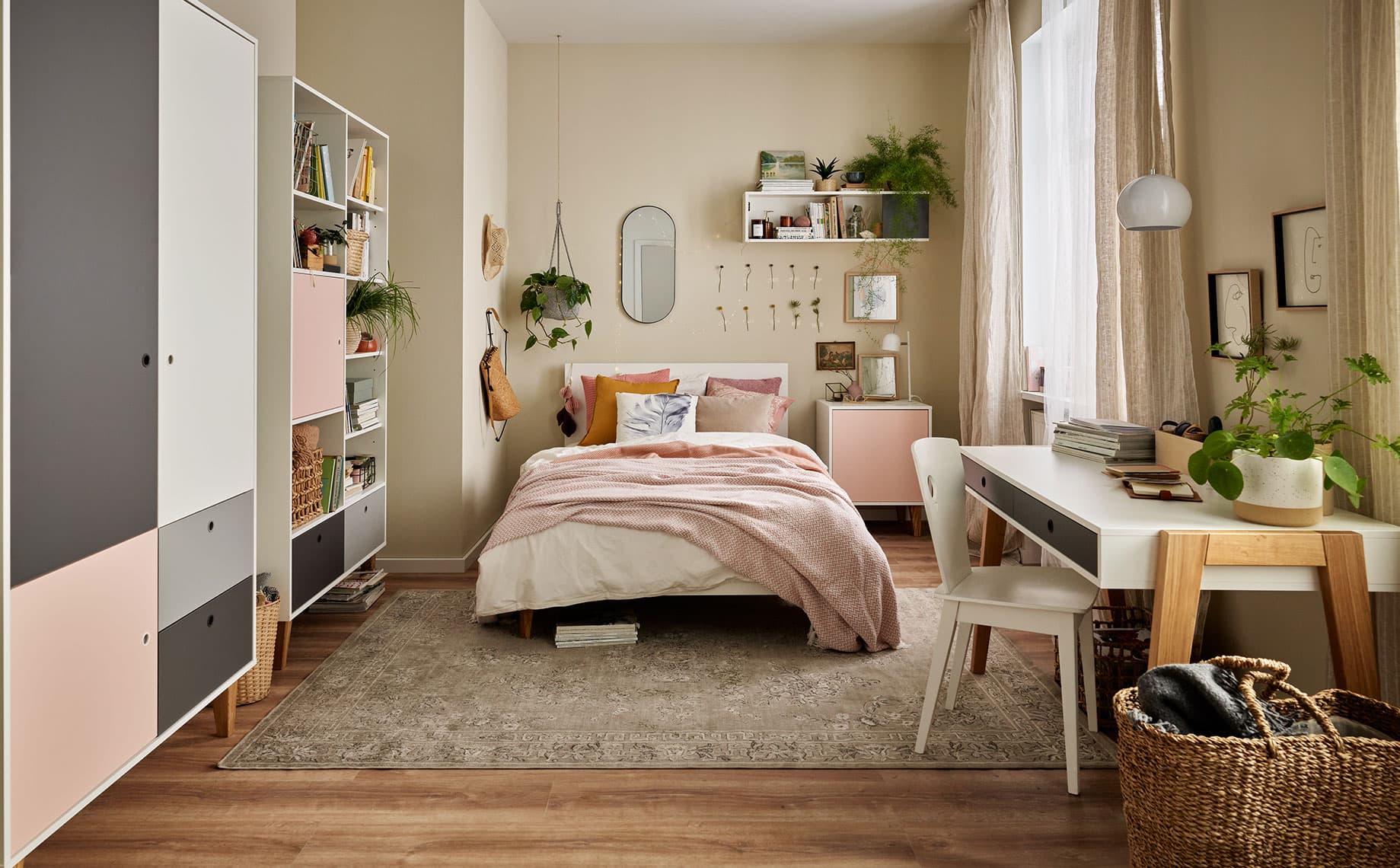 Pojemne meble błyskotliwie pomieszczą wszystkie nastoletnie sprawy. Zaskoczą Was też sprytnymi rozwiązaniami: wyprofilowany, tapicerowany zagłówek łóżka będzie idealny na wieczorny seans, a silikonowe uchwyty zapewnią wygodne otwieranie szaf i szuflad.