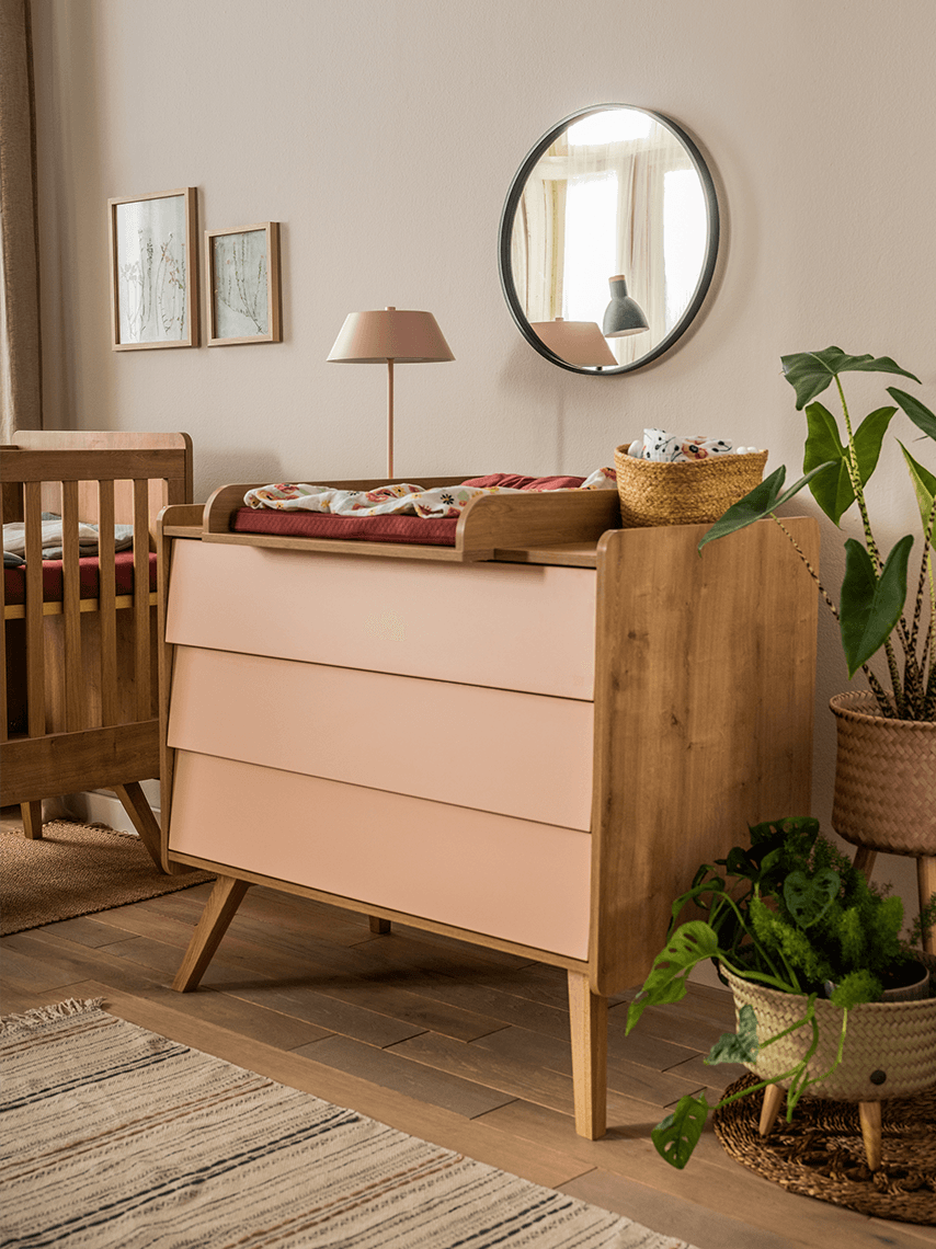 Kolekcja Vintage pozwoli zbudować praktyczny i stylowy kącik dla malucha. Oryginalne meble łączące naturalne drewno z pastelowymi kolorami doskonale odnajdą się także w dorosłej przestrzeni. Dzięki temu wraz z pojawieniem się nowego członka rodziny wnętrze zachowa swój klimat i charakter. Solidne bryły mebli pomieszczą wiele, a skośne drewniane nóżki ułatwią utrzymanie porządku w pokoju.