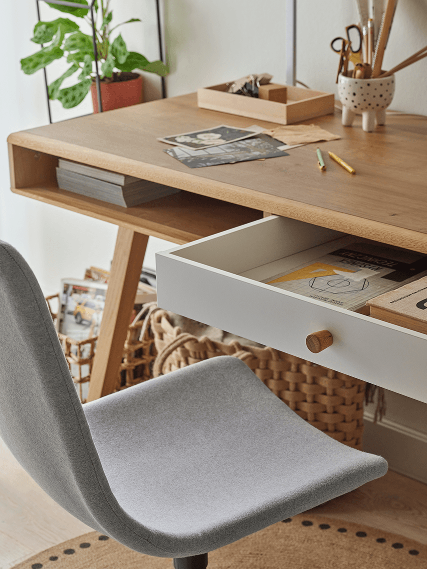 Ergonomiczne kształty i przemyślane funkcjonalności sprawiają, że ta kolekcja sprosta wymaganiom trybu życia każdego nastolatka. Praktyczna wnęka w biurku pomoże w uporządkowaniu ładowarek, a wsuwana pod łóżko skrzynia na kółkach przechowa dodatkową pościel czy sezonowe ubrania.