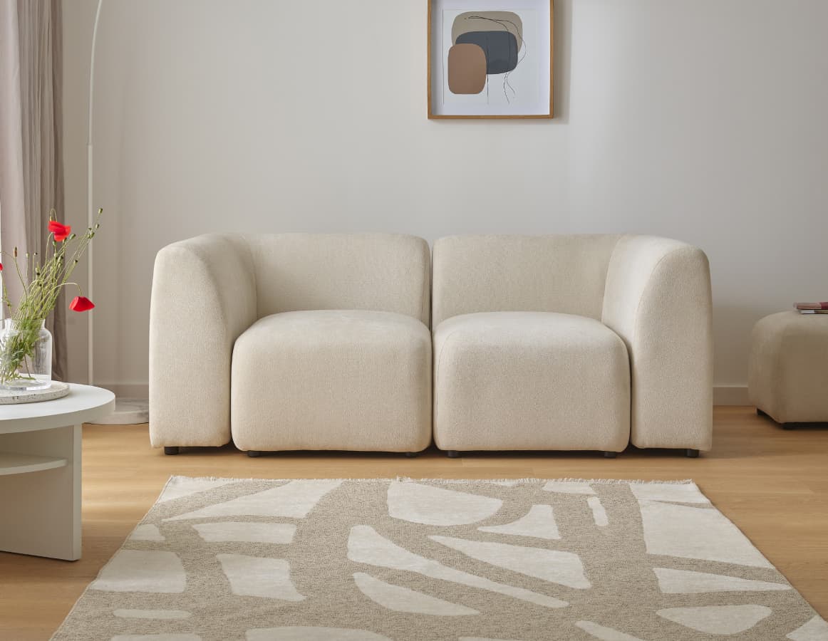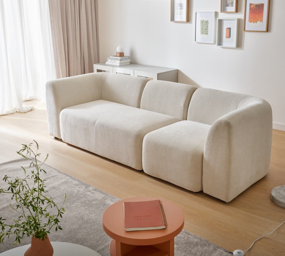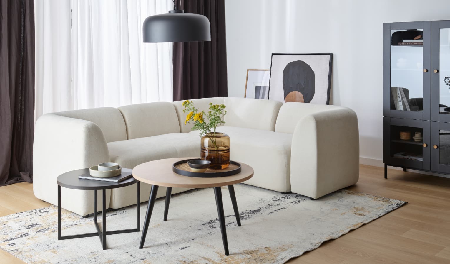 Dzięki pojedynczym i podwójnym modułom meble Nui można swobodnie konfigurować i dopasować do małych i dużych przestrzeni. Solidny mechanizm łączenia jest prosty i wygodny w użyciu. Możesz również wybrać gotowe zestawy sof czy narożników.