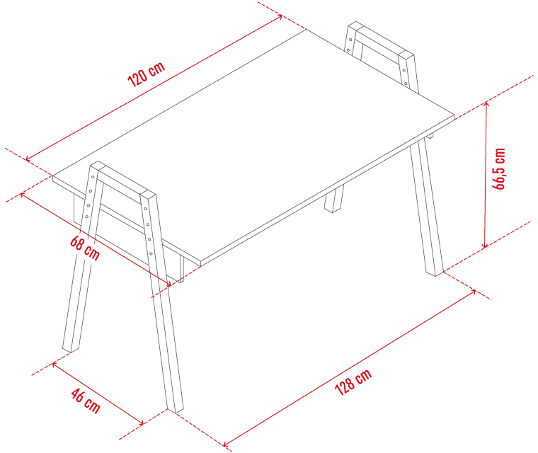 - Blat: laminowana płyta wiórowa o grubości 22 mm.