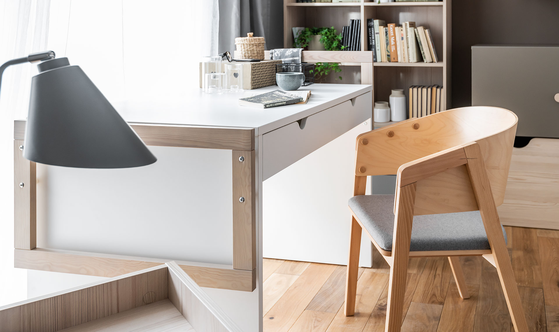 - Biurko stworzy wygodną przestrzeń roboczą nawet w niewielkim pokoju. Dzięki sprytnym rozwiązaniom cała powierzchnia blatu może pozostać wolna i służyć aktualnym potrzebom.