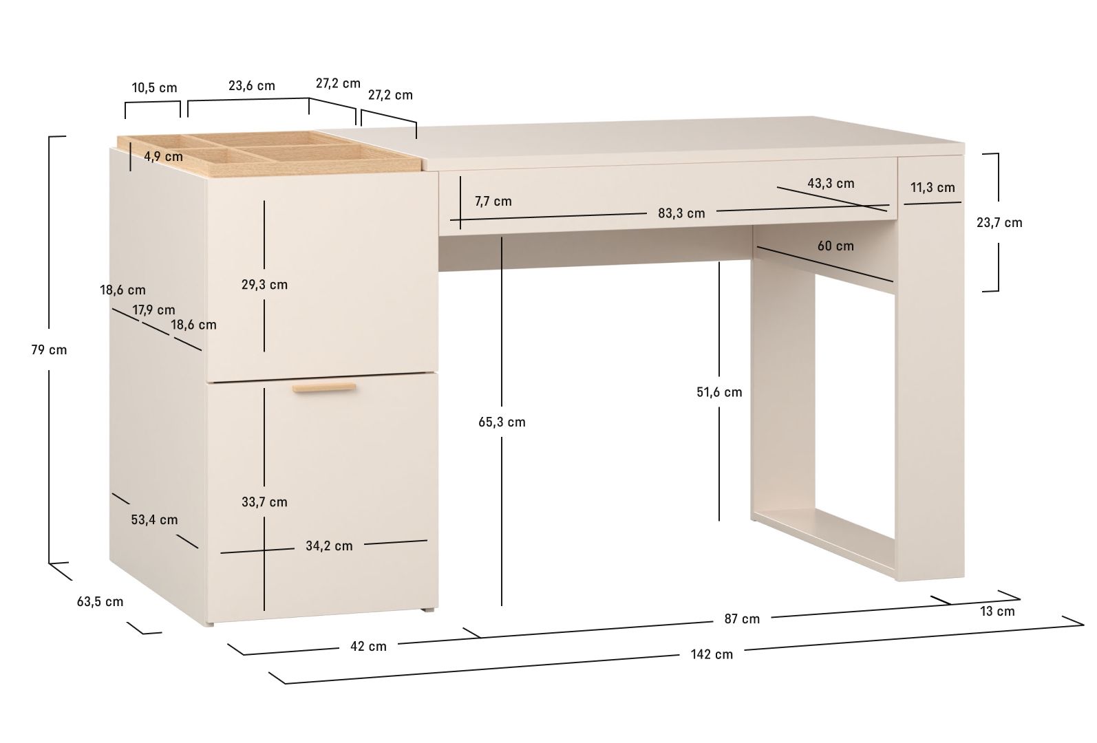 • Korpus i front biurka mają odcień piaskowego beżu.