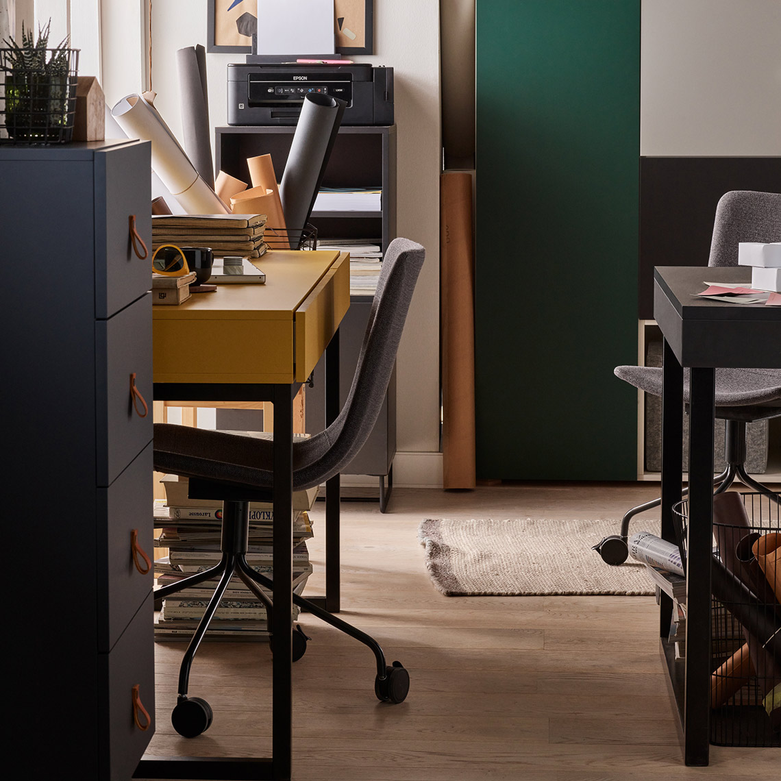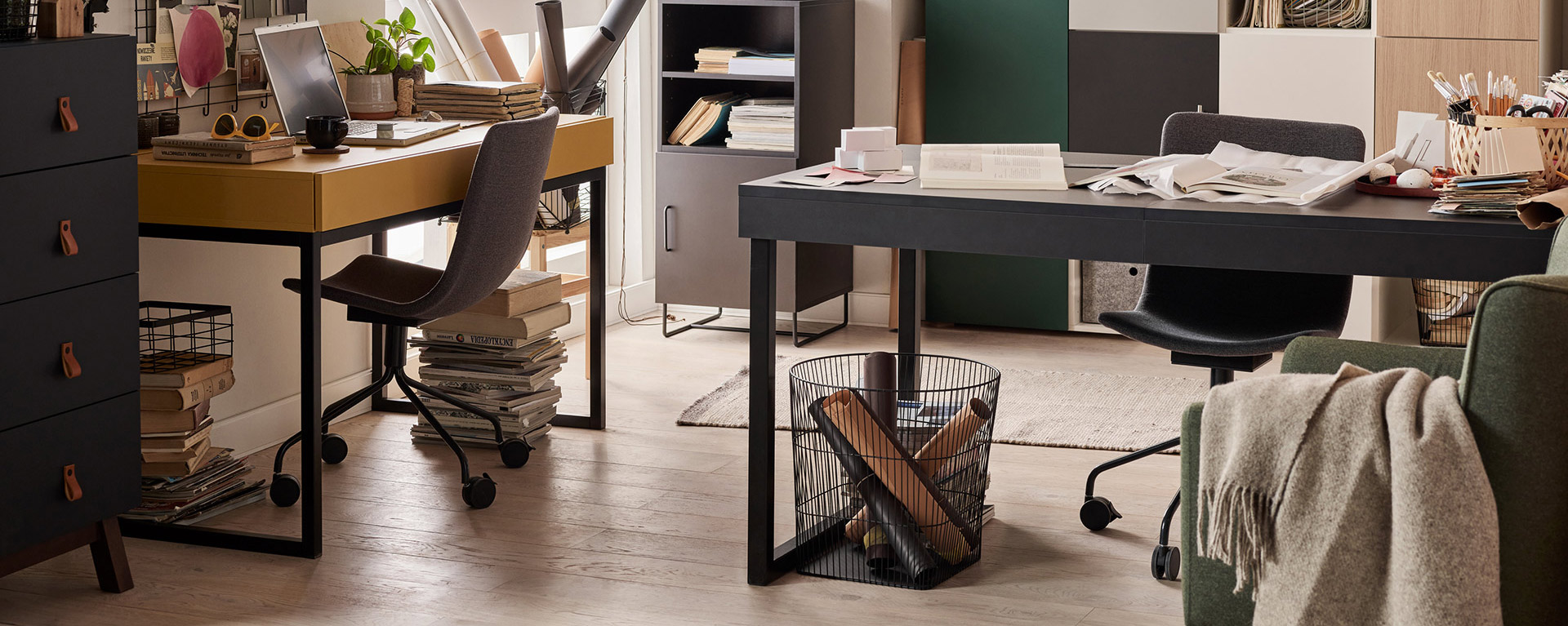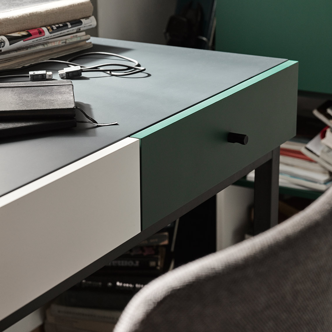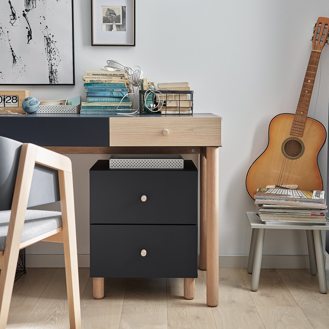- Funkcjonalność biurka możesz dodatkowo rozszerzyć, zestawiając je z kontenerkiem biurka Creative.