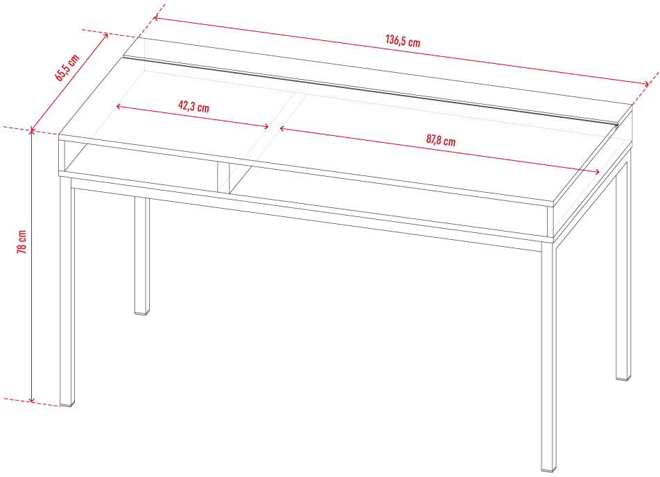 - Jeśli zdecydujesz się na wariant bez szuflad, pod blatem biurka znajdą się otwarte przegrody ułatwiające organizację Twoich rzeczy. Łatwo zamontujesz je samodzielnie.