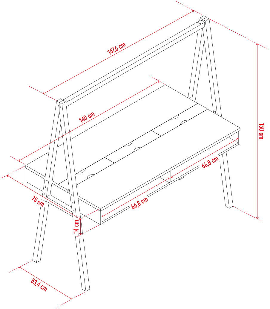 - Pod blatem roboczym znajdują się 4 wnęki. Można je wykorzystać jako otwarte półki na zeszyty i przybory lub wyposażyć w szuflady z tej samej kolekcji, aby przechowywać mniejsze przedmioty.