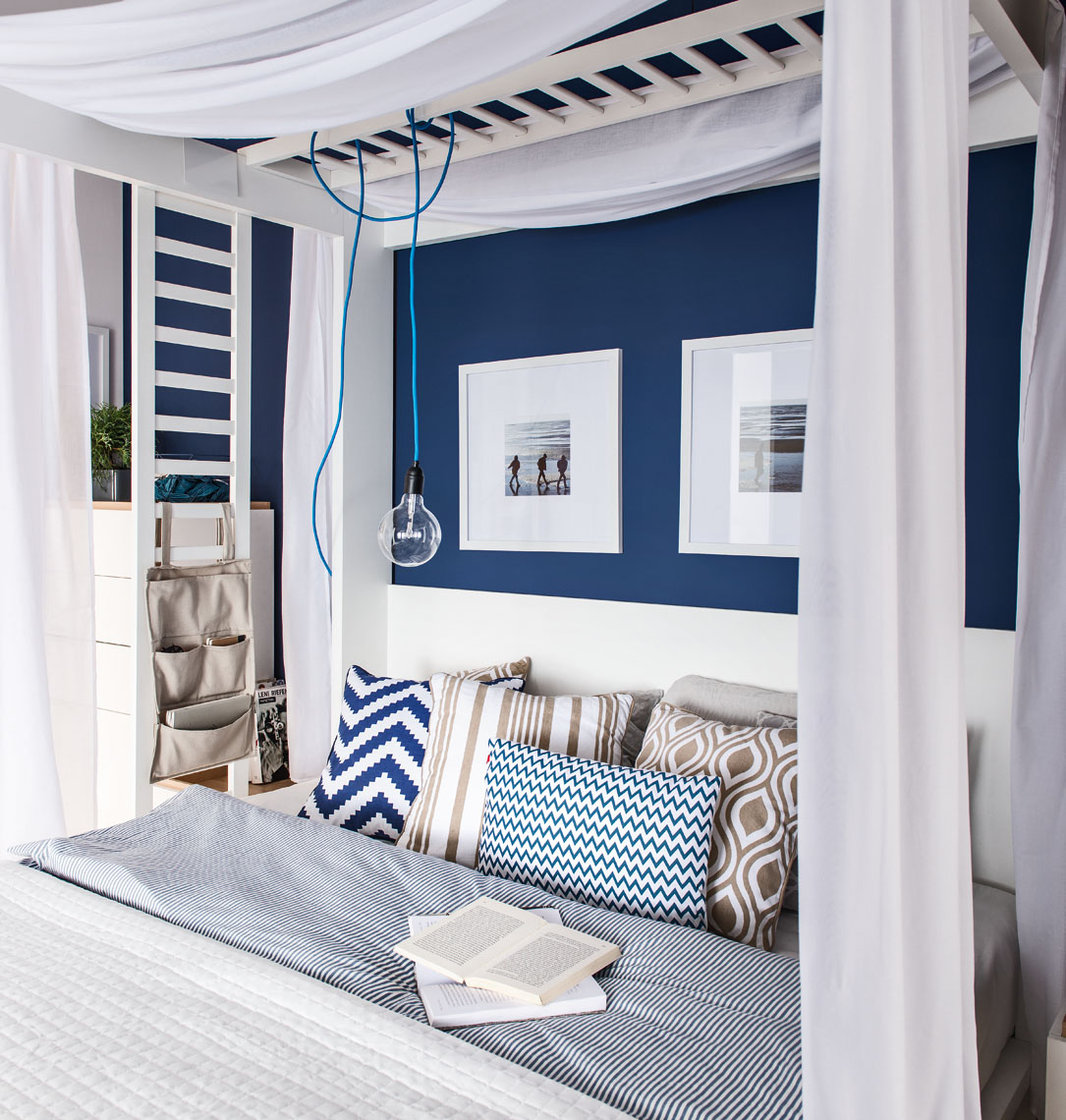 Na drabince możesz zawiesić dodatkowe oświetlenie, doniczki z kwiatami lub np. zdjęcia. Montując drabinkę do boku baldachimu, łatwo przesuniesz ją po całej długości łóżka. Maksymalnie dopuszczalne obciążenie drabinki, to 10 kg.