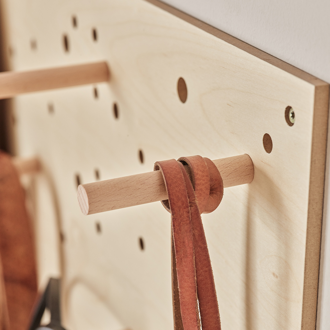- Kołki można przymocować do tablicy Slot w dowolnym miejscu i zyskać stabilną bazę dla półek i innych dodatków.