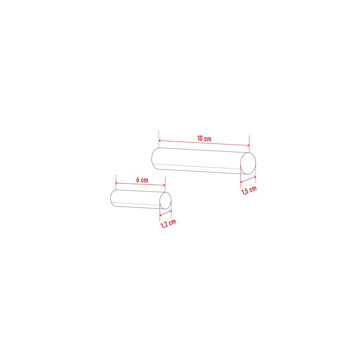 - W zestawie znajduje się 10 kołków: 5 sztuk o długości 6 cm i średnicy 1,2 cm oraz 5 sztuk o długości 10 cm i średnicy 1,5 cm.