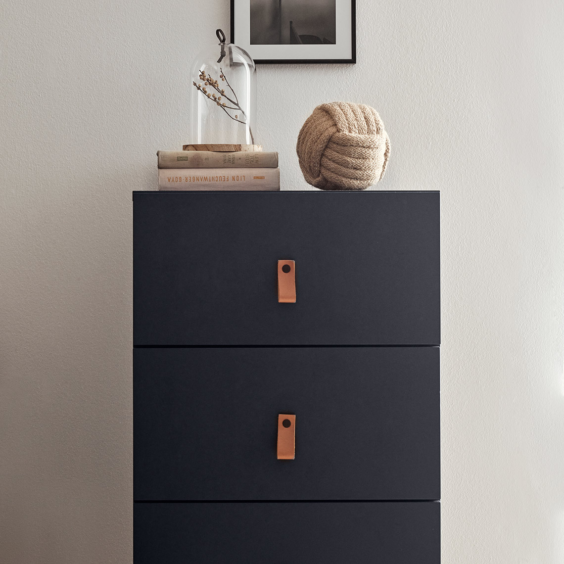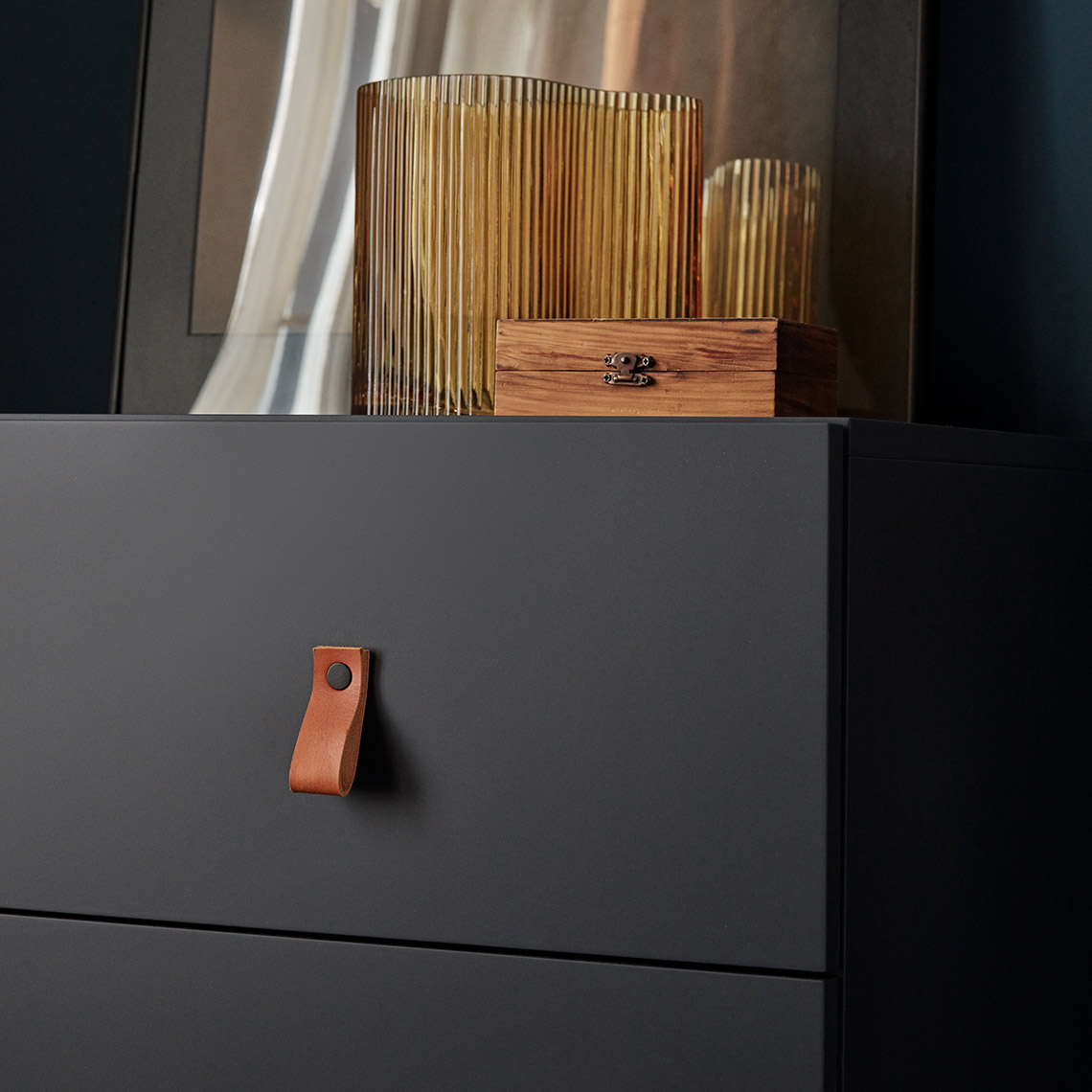 - Do komody możesz wybrać listwę oświetleniową LED, którą możesz łatwo przykleić do dołu wybranej półki. Montując ją bliżej ściany tylnej w otwartych przestrzeniach można jeszcze lepiej wyeksponować przedmioty na półce. W celu podświetlenia wnętrza szuflad listwę LED należy przykleić bliżej przodu mebla. Wraz z oświetleniem otrzymasz bezprzewodowy włącznik, który można magnetycznie przymocować w najwygodniejszym miejscu.