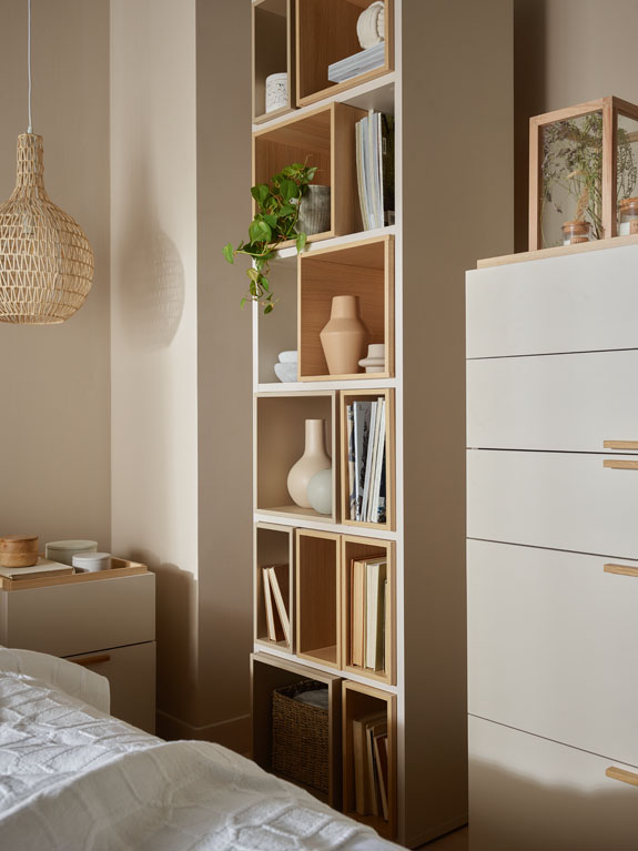 - W górnej części komody znajduje się wnęka wykończona kontrastowym dekorem dębowym. Zapewnia błyskawiczny dostęp do rzeczy, które warto mieć zawsze pod ręką. Wysokie krawędzie dodatkowo zabezpieczają przedmioty przed spadaniem.