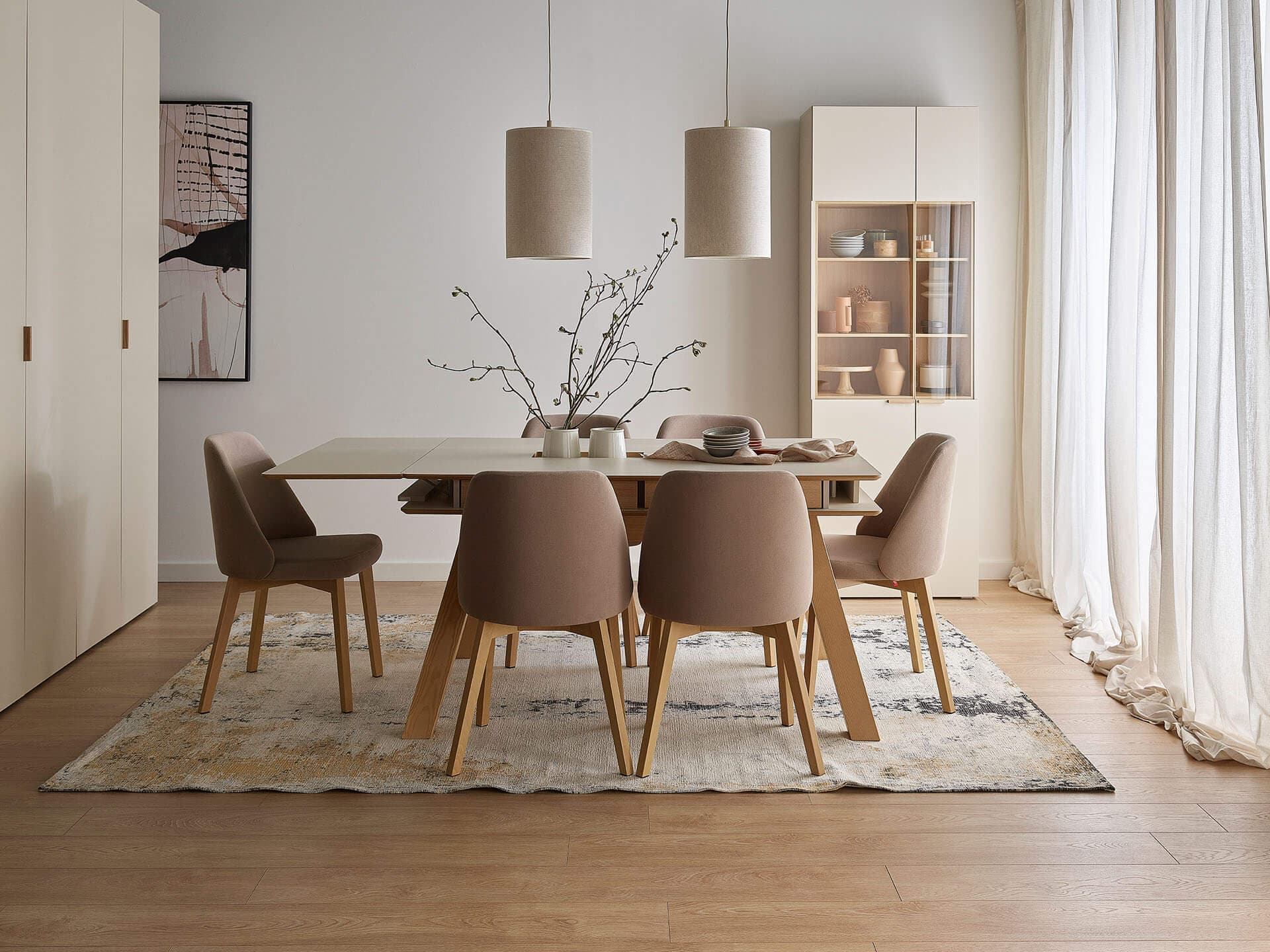 - Krzesło Komm dobrze prezentuje się w zestawieniu z innymi meblami VOX – barwa jego obicia i nóg jest dopasowana do ich wykończenia.