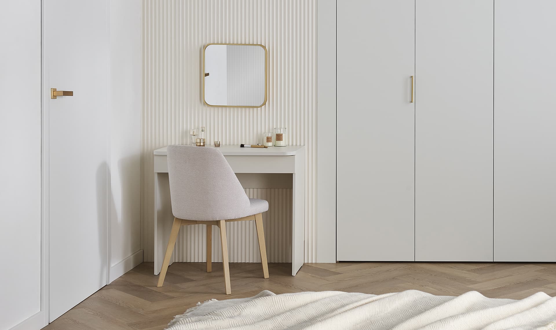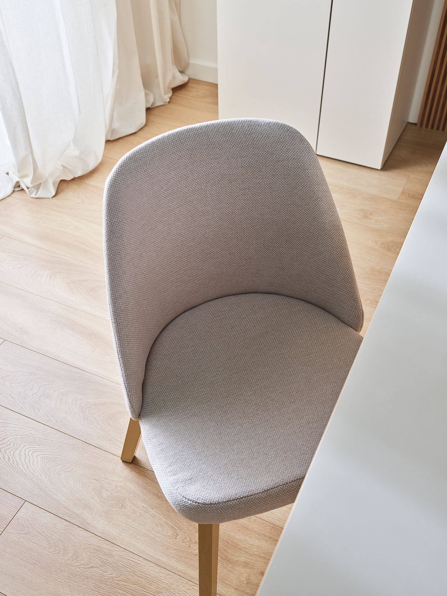 - Tapicerka krzesła jest piaskowo beżowa. Do wyboru mamy także modele w tkaninie grafitowej lub taupe.
