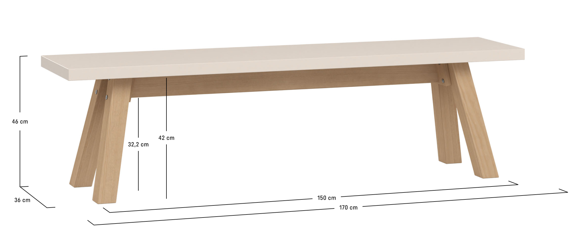 - Siedzisko ławki ma odcień piaskowego beżu.