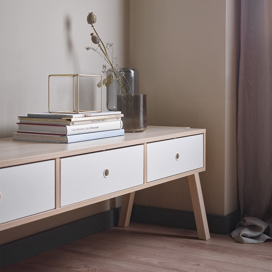 Ławka z serii Spot zapewnia miejsce do siedzenia i przechowywania. W zestawie znajdują się 3 dwustronne szuflady do umieszczenia w wybranych wnękach. Mebel sprawdzi się w przedpokoju, jadalni czy salonie.