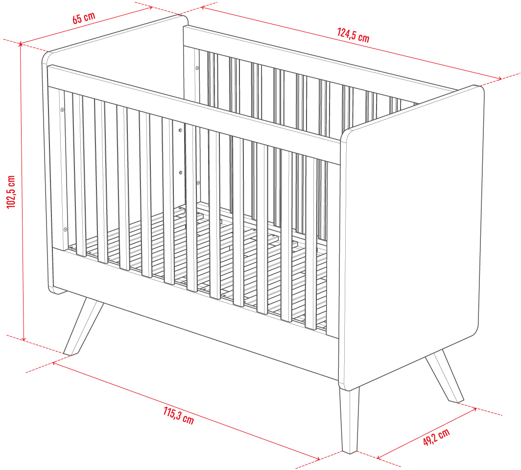 - Wysokie ścianki z estetycznie zaokrąglonymi narożnikami zapewniają niemowlęciu bezpieczeństwo podczas snu.