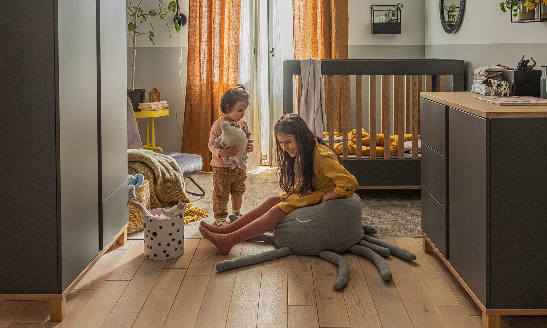 Łóżeczko Altitude ma regulowaną wysokość podłogi i rośnie wraz z dzieckiem – z czasem można przekształcić je w wygodny tapczanik. Do mebla pasują materace o wymiarach 70x140 cm.