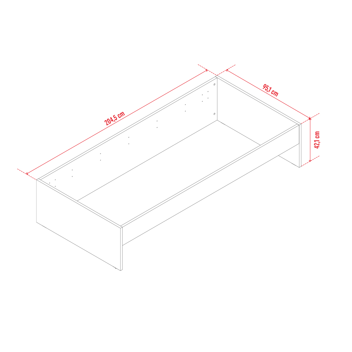 - Powierzchnia spania łóżka wynosi 90 cm x 200 cm. Można kupić samą ramę lub dobrać materac o preferowanej twardości. Drewnianą podłogę łóżka należy również dokupić osobno.