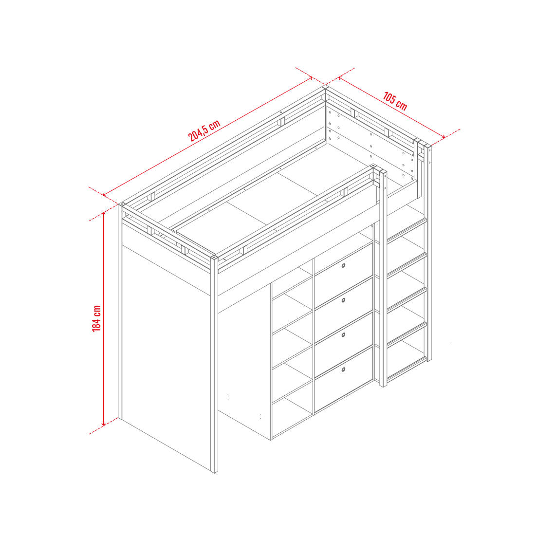 • Powierzchnia spania łóżka wynosi 90 x 200 cm. Wygodny dostęp na piętro zapewnia solidna drabinka, przyjazna dla dzieci. Dzięki burcie przebywanie na górze jest w pełni bezpieczne, a sen – komfortowy.