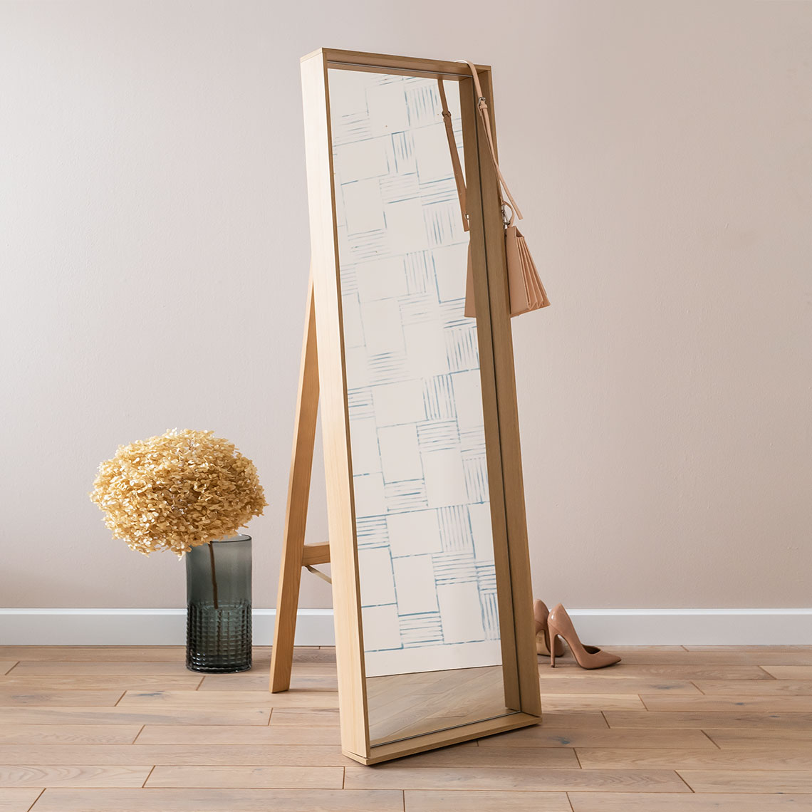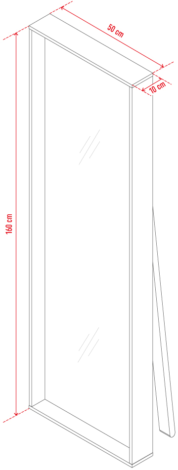 - Uniwersalna, wolnostojąca konstrukcja lustra sprawia, że możesz go użyć w każdym pomieszczeniu – sypialni, garderobie i nie tylko. Co więcej, nie trzeba przytwierdzać go na stałe do ściany, więc możesz przestawić je, gdy wpadniesz na nowy pomysł na wystrój wnętrza.