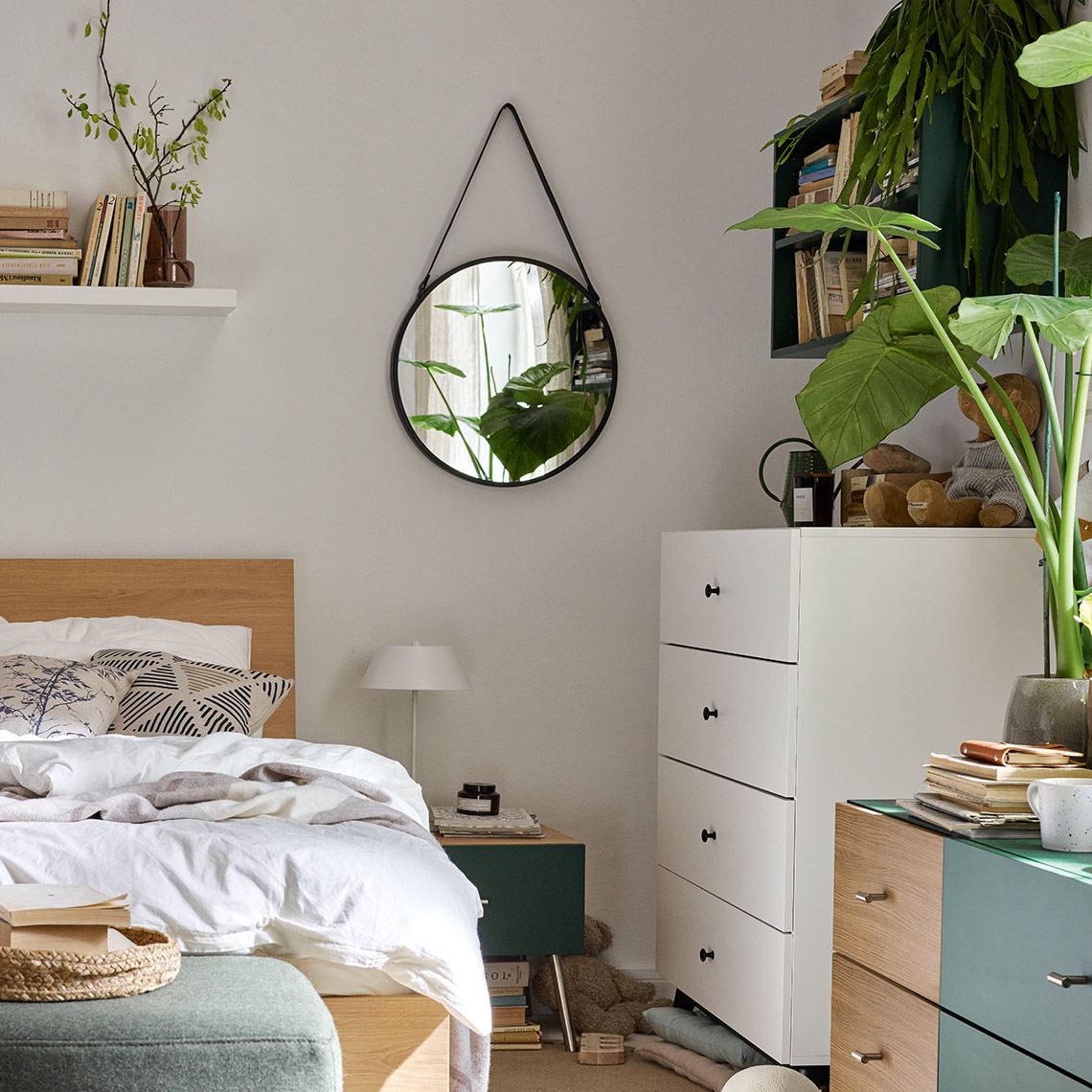 Lustro Hang II występuje w dwóch rozmiarach. Możesz je powiesić w sypialni, pokoju dziennym, jadalni czy korytarzu.