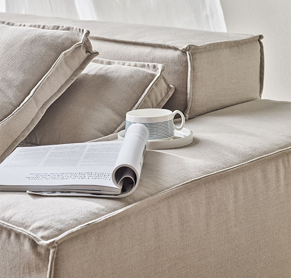 - Aby stworzyć klasyczną sofę, do lewego modułu wystarczy dokupić wariant prawostronny. Chcąc wydłużyć mebel, należy uzupełnić go o siedzisko bez boczku. Wszystkie elementy serii warto zamówić jednocześnie, aby mieć pewność, że tkanina obiciowa pochodzi z tej samej partii i ma identyczny odcień.