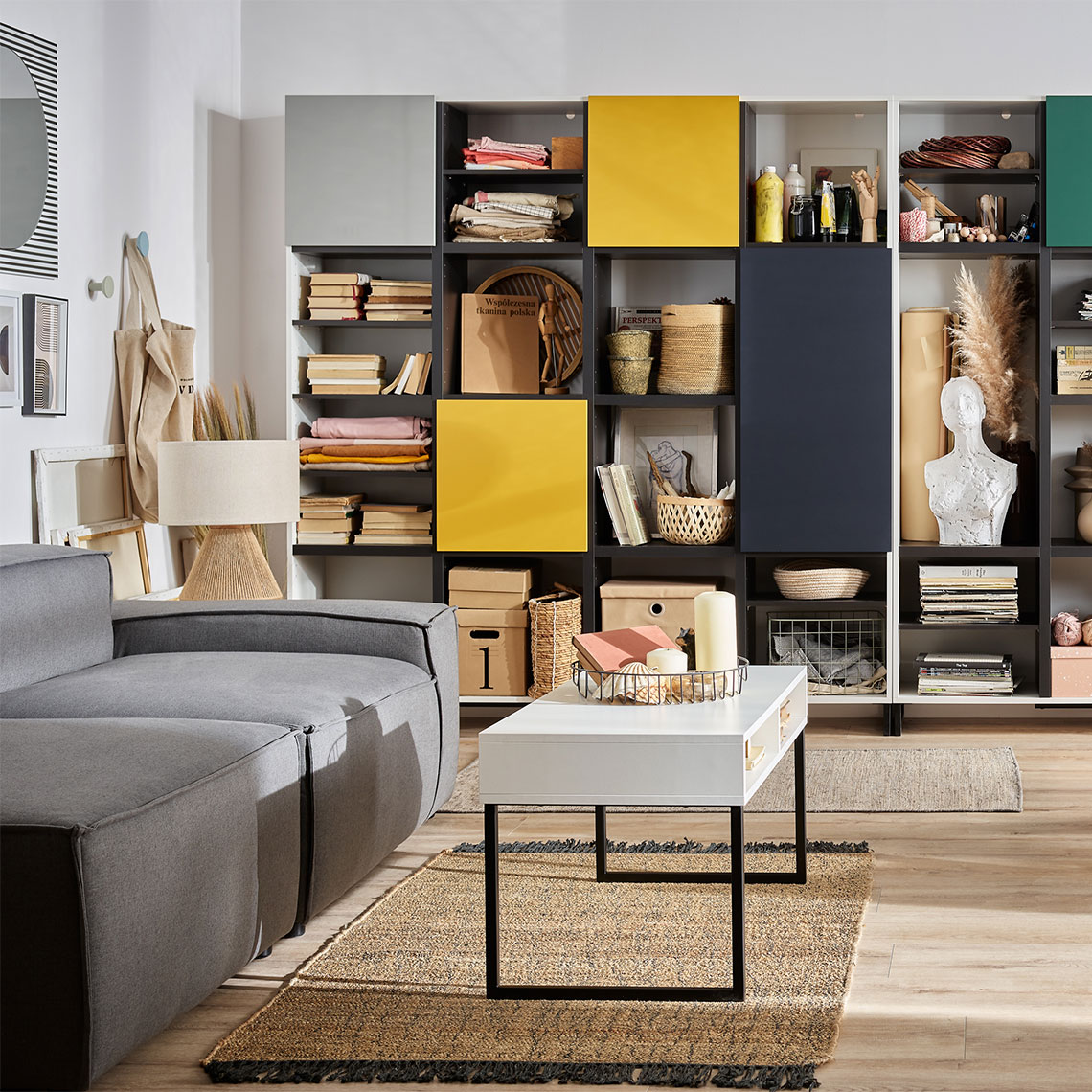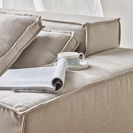 - Aby stworzyć klasyczną sofę, do lewego modułu wystarczy dokupić wariant prawostronny. Chcąc wydłużyć mebel, należy uzupełnić go o siedzisko bez boczku. Wszystkie elementy serii warto zamówić jednocześnie, aby mieć pewność, że tkanina obiciowa pochodzi z tej samej partii i ma identyczny odcień.