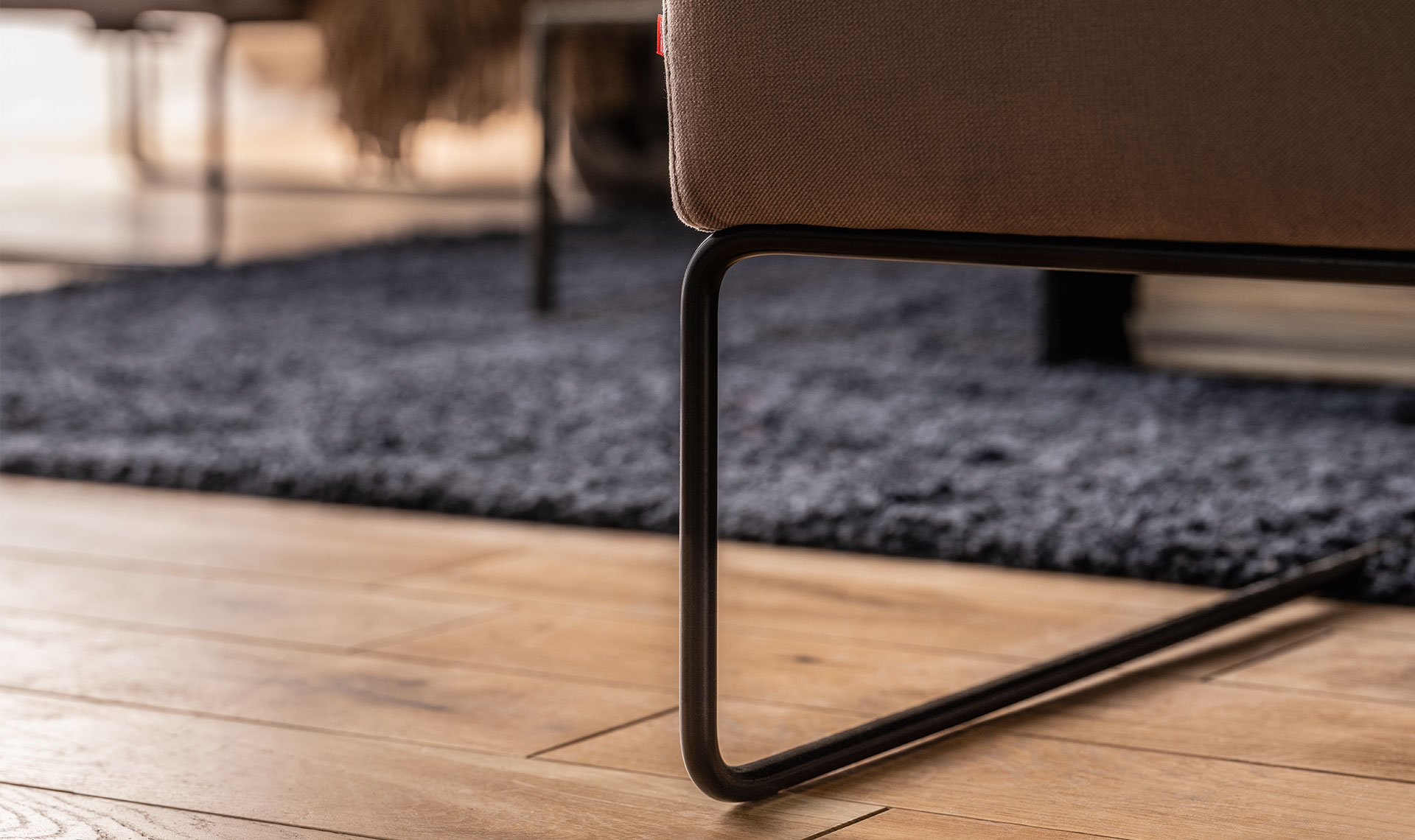 Wypełnienie siedziska stanowią sprężyny faliste i gęsta, sprężysta pianka, której bardziej elastyczny wariant znajduje się również w oparciu. Konstrukcja opiera się na stelażu z drewna bukowego, sosnowego i świerkowego oraz płyty meblowej, sklejki i płyty pilśniowej. Szerokie nóżki powstały ze stali lakierowanej proszkowo na czarno.