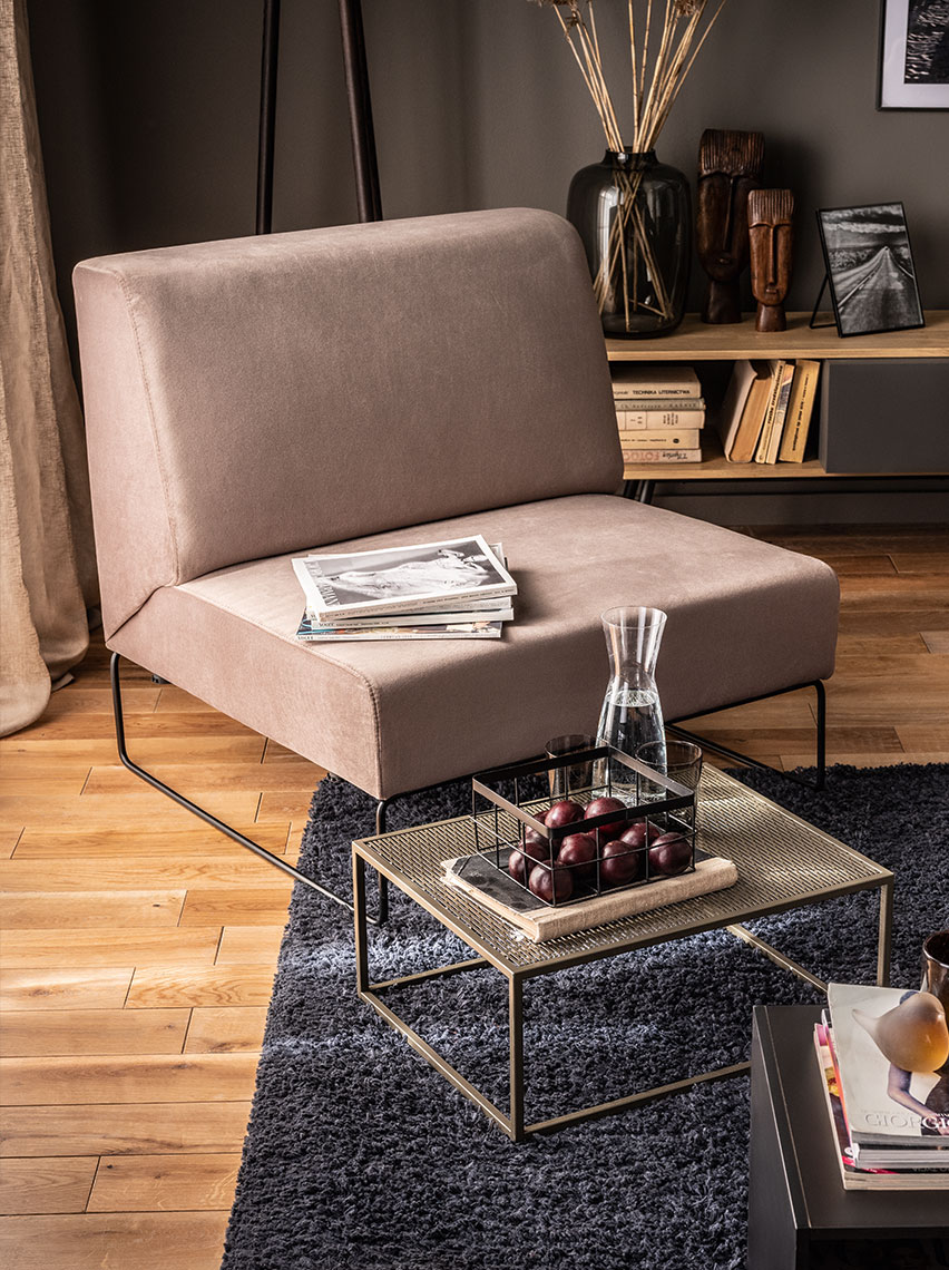 - Po obu stronach modułu znajdują się zaczepy – zostały ukryte pod siedziskiem, więc nie wpływają na estetykę mebla. Dzięki nim można go swobodnie łączyć z innymi bryłami z tej samej kolekcji.