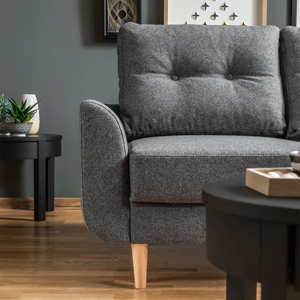 - Wysokie na 14 cm nogi narożnika pozwalają na wygodne sprzątanie. Występują w 6 odcieniach do wyboru: wenge, buk, jasny brąz, ciemny brąz, biały i czarny.