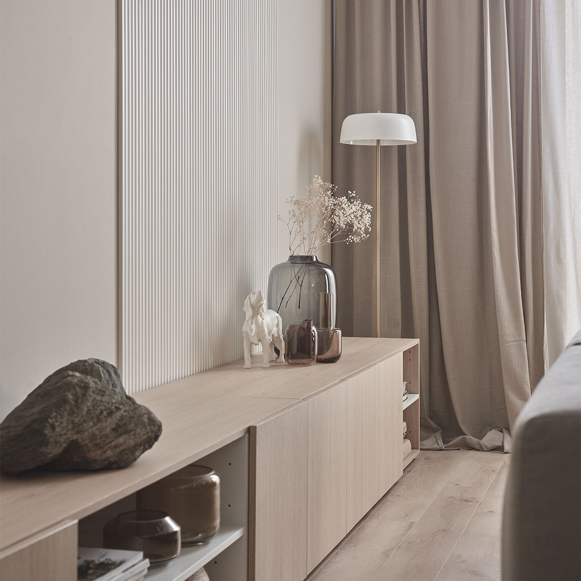 Panele lamelowe Linerio S-Line sprawią, że pomieszczenie wyda się wyższe i bardziej przytulne. Pasują do różnych mebli i dodatków, dlatego świetnie zniosą zmiany wystroju na przestrzeni lat. Pomogą wyróżnić konkretną strefę we wnętrzu i wyciszyć przestrzeń. Wąskie lamele powstały z nowoczesnego materiału, dzięki czemu są lekkie i trwałe.