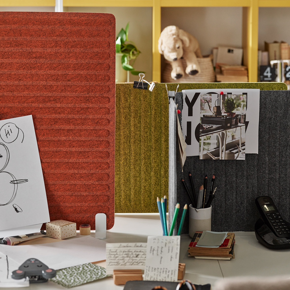 - Zestawiając kilka parawanów koło siebie możesz wydzielić dowolny obszar i stworzyć miejsce do pracy lub nauki.