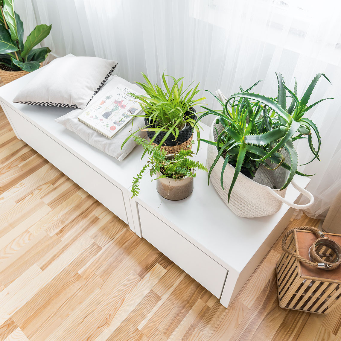 - Podest sprawdzi się także w roli prostego siedziska. Wystarczy dodać miękkie poduszki, by zyskać dodatkowe miejsce do spędzania wolnego czasu. Możesz również potraktować go jak niski stolik i ustawić na przykład pod oknem.